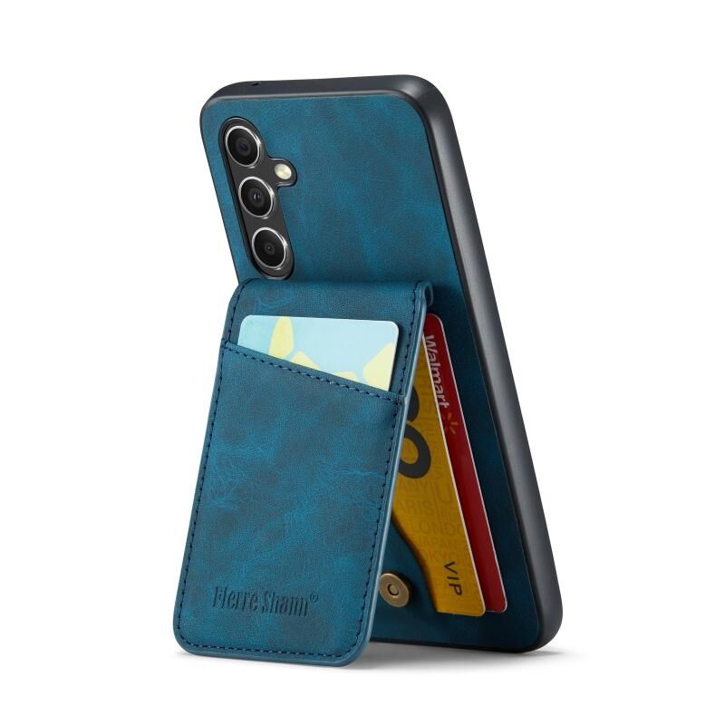 Για Samsung Galaxy A34 5G Fierre Shann Crazy Horse κάρτα κάτοχος κάτοχος πίσω κάλυμμα PU υπόθεση τηλεφώνου (μπλε) (FIERRE SHANN)