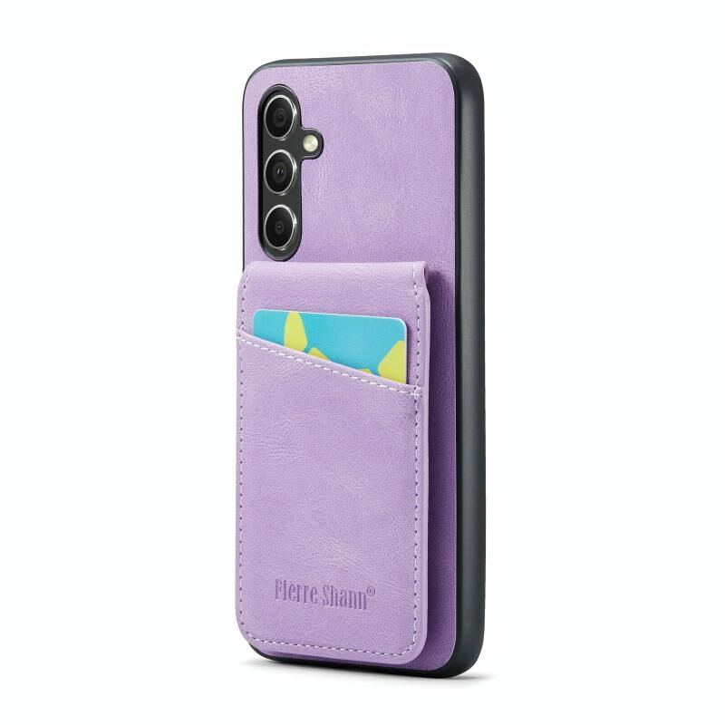 Για Samsung Galaxy A34 5G Fierre Shann Crazy Horse κάρτα κάτοχος κάτοχος πίσω κάλυμμα PU υπόθεση τηλεφώνου (μωβ) (FIERRE SHANN)