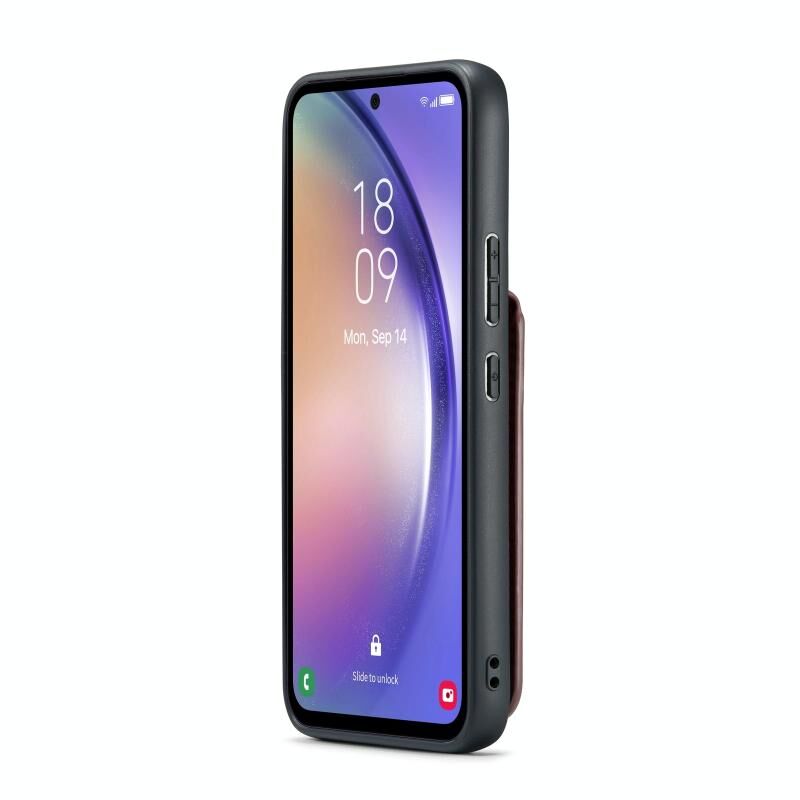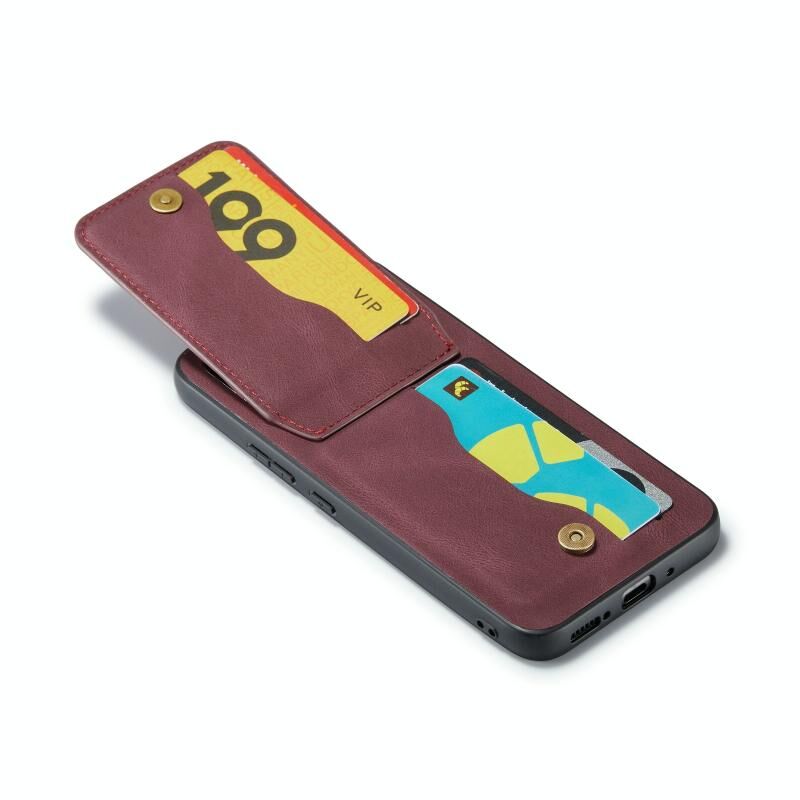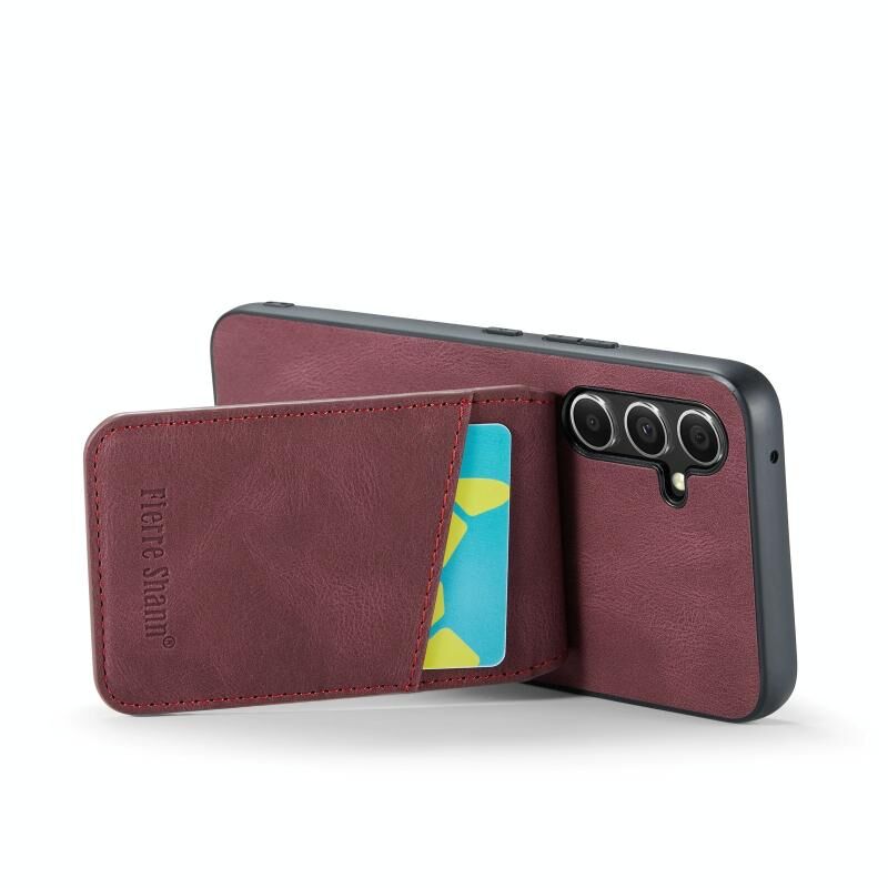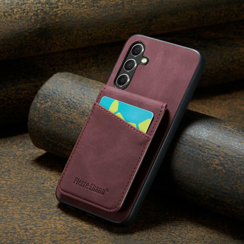 Για Samsung Galaxy A34 5G Fierre Shann Crazy Horse κάρτα κάτοχος κάτοχος πίσω κάλυμμα PU υπόθεση τηλεφώνου (κόκκινο κρασί) (FIERRE SHANN)
