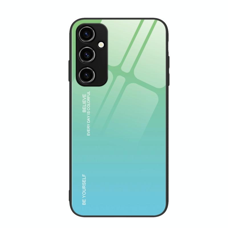 Θήκη τηλεφώνου από γυαλί με διαβαθμιστικά χρώματα για Samsung Galaxy A34 5G (Πράσινο κυανό)
