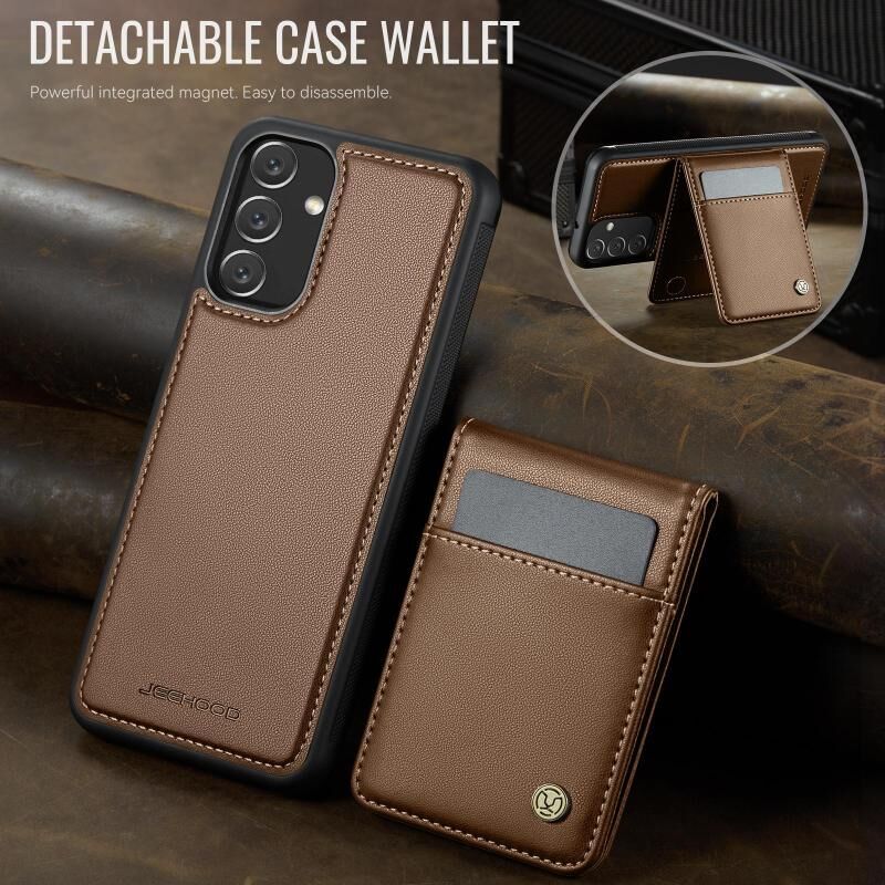 Για Samsung Galaxy A34 5G JEEHOOD J06 Θήκη κινητού τηλεφώνου από PU με τσέπη για κάρτες RFID και MagSafe σε βρετανικό στυλ (Μωβ) (JEEHOOD)