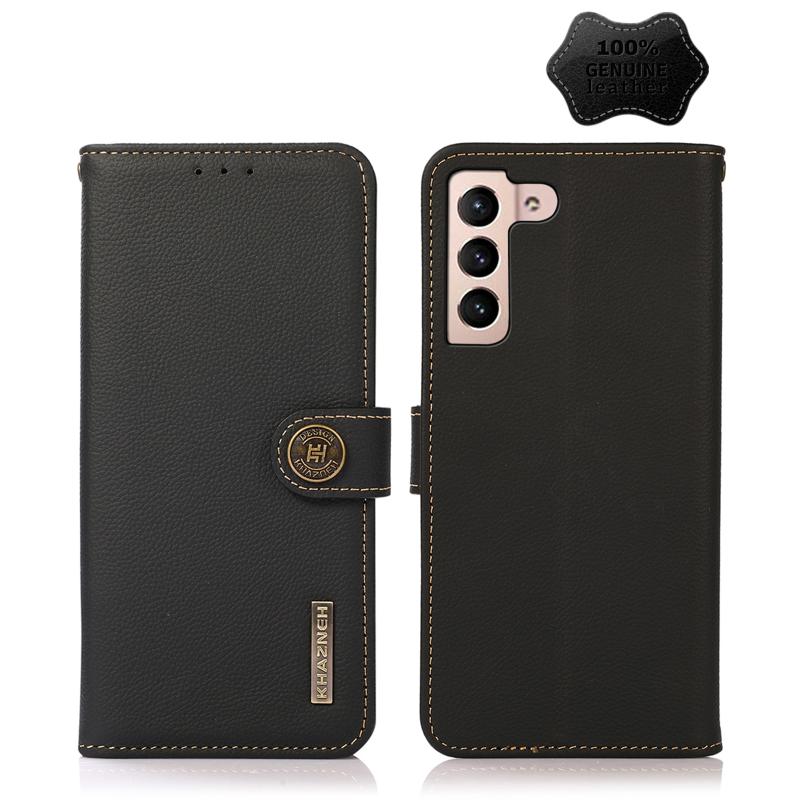 Θήκη τηλεφώνου Samsung Galaxy A34 5G KHAZNEH Custer από γνήσιο δέρμα με προστασία RFID (Μαύρο)