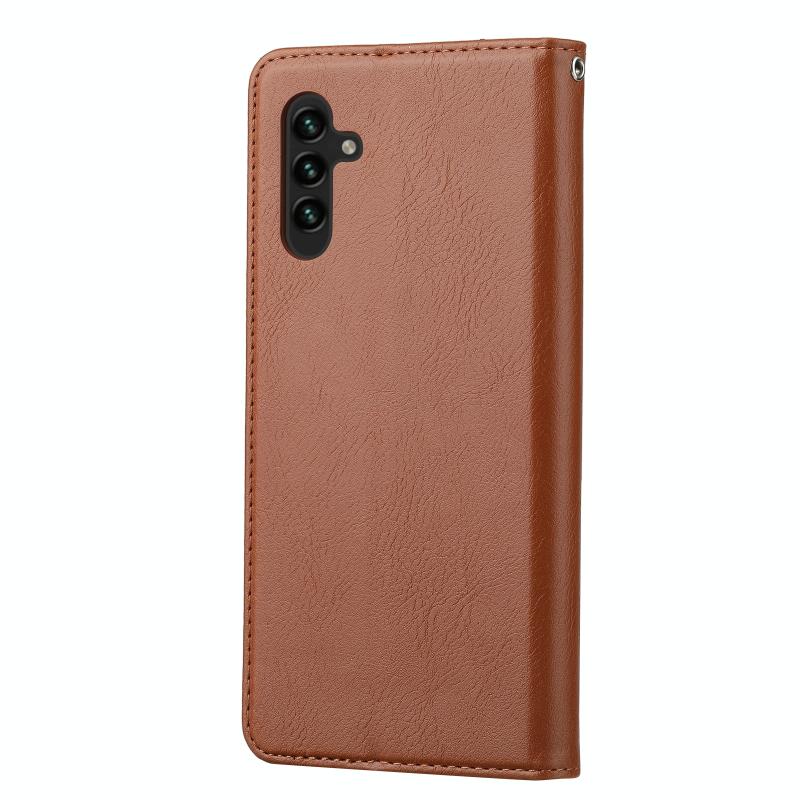 Θήκη τηλεφώνου Samsung Galaxy A34 5G από δέρμα με υφή ζυμαριού και πτυσσόμενο σχεδιασμό (Καφέ)