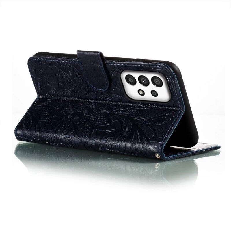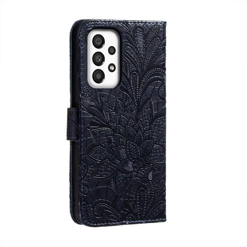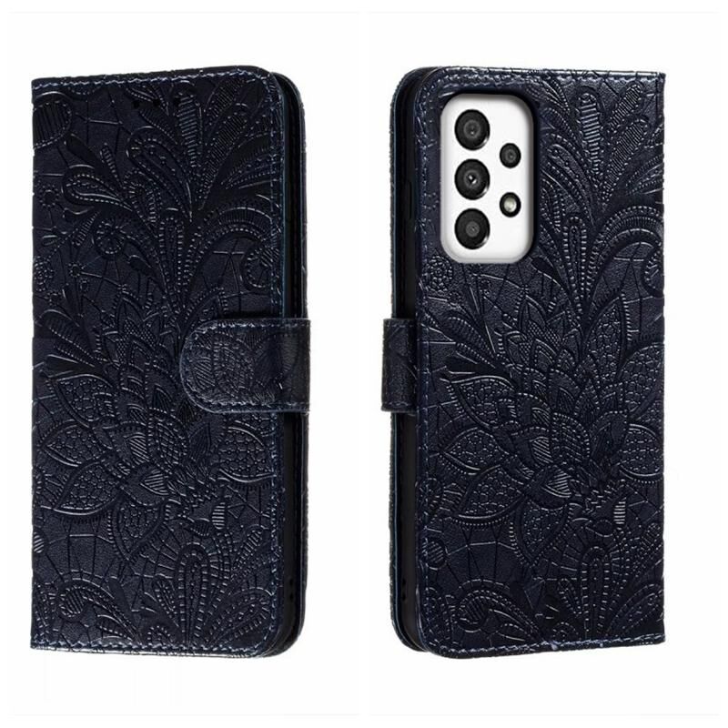 Για Samsung Galaxy A34 5G Lace λουλούδι ανάγλυφο Flip δερμάτινη θήκη τηλεφώνου (σκούρο μπλε)