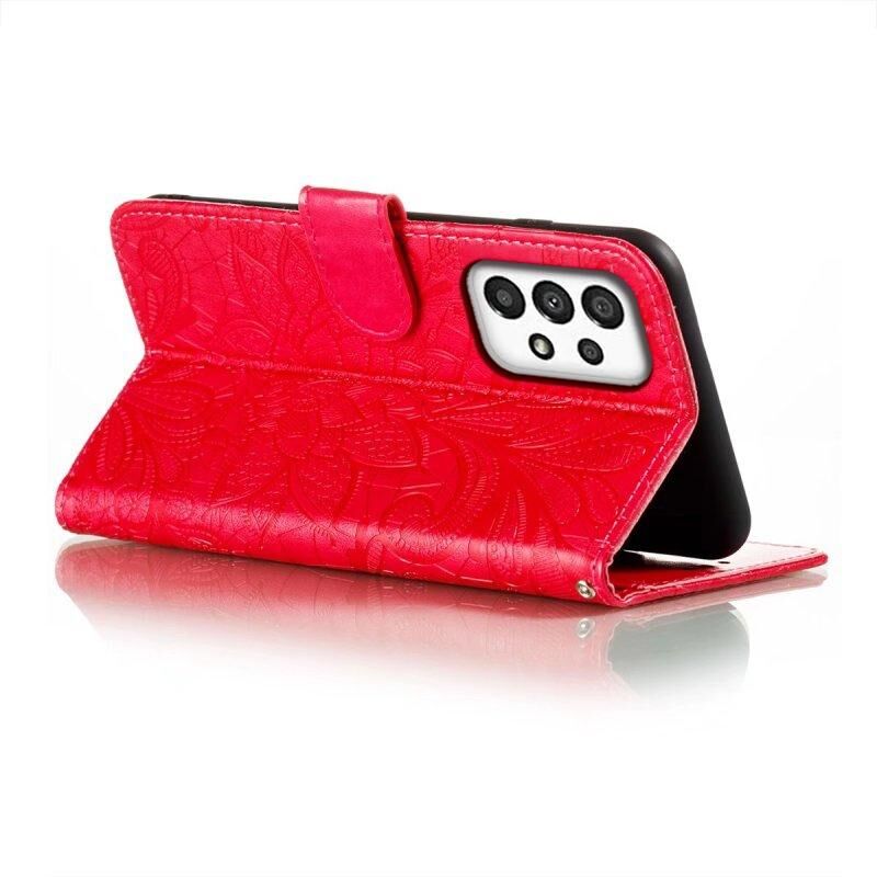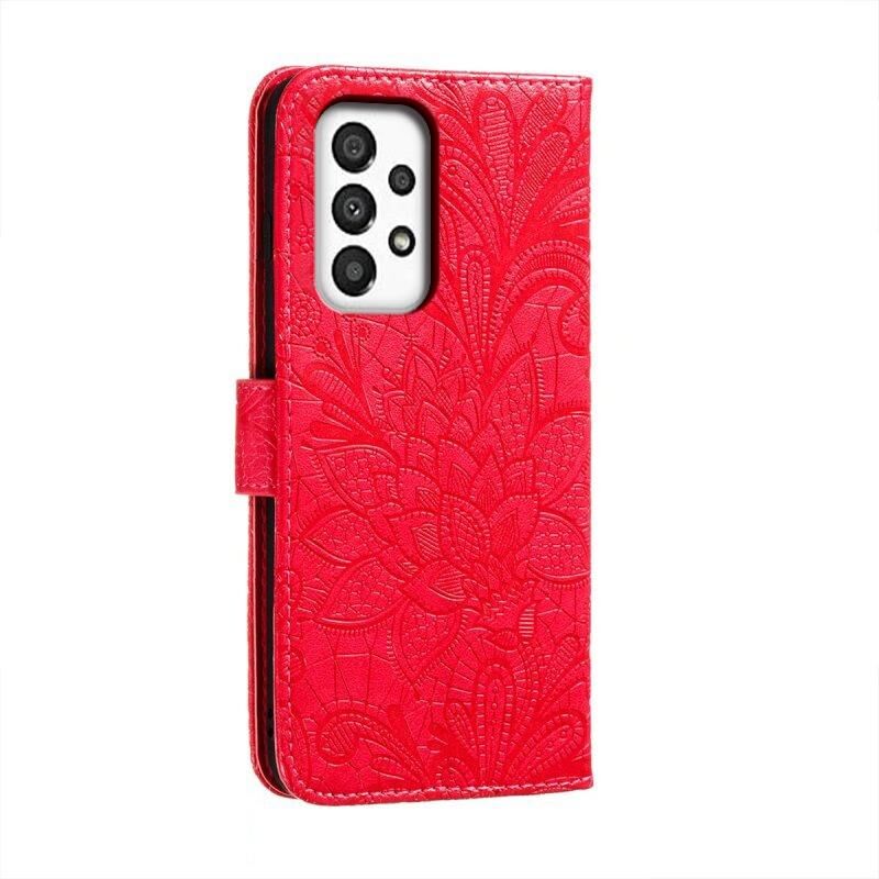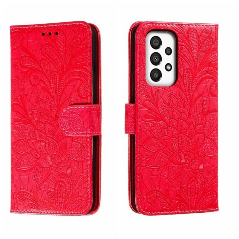 Για Samsung Galaxy A34 5G Lace λουλούδι ανάγλυφο Flip δερμάτινη θήκη τηλεφώνου (κόκκινο)