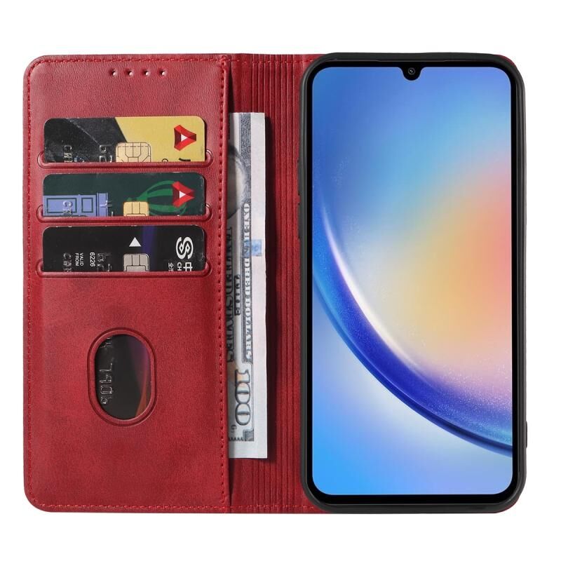 Για Samsung Galaxy A34 5G Μαγνητικό κλείσιμο δερμάτινη θήκη τηλεφώνου (κόκκινο)