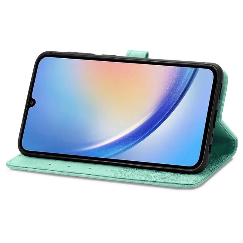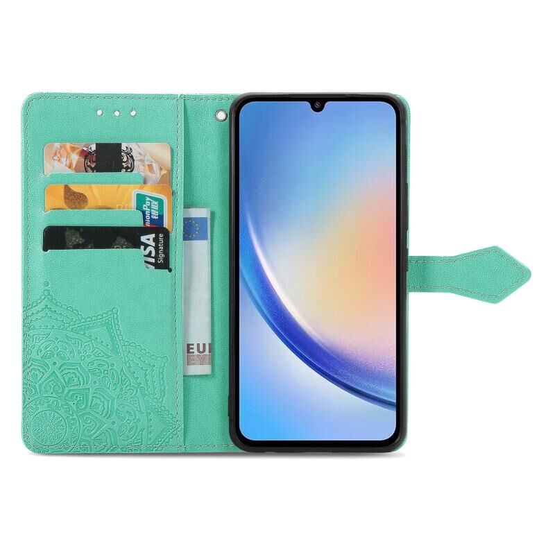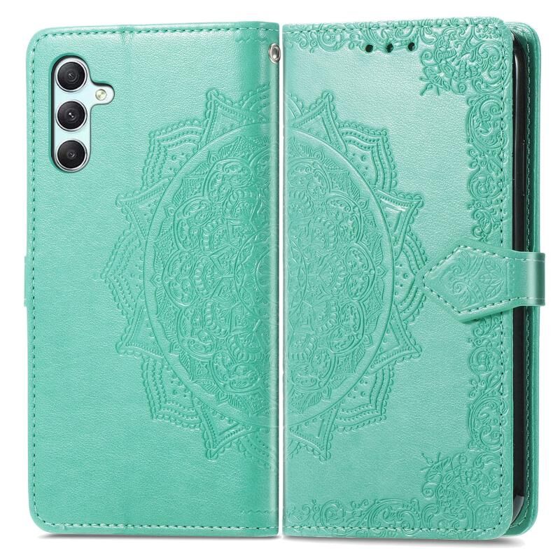 Για Samsung Galaxy A34 5G Mandala λουλούδι ανάγλυφο δερμάτινη θήκη τηλεφώνου (πράσινο)
