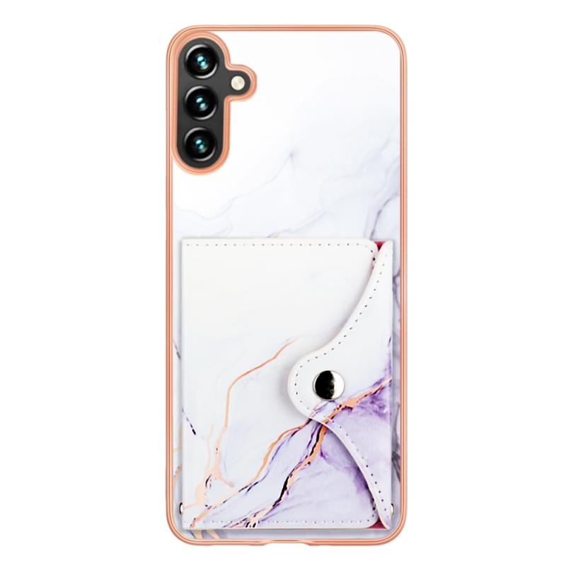For Samsung Galaxy A34 5G Marble Pattern IMD Card Slot Phone Case(White Purple)