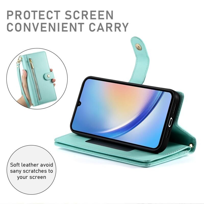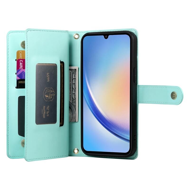 Για Samsung Galaxy A34 5G Nine Card-slot φερμουάρ πορτοφόλι τσάντα δερμάτινη θήκη τηλεφώνου (πράσινο μέντα)