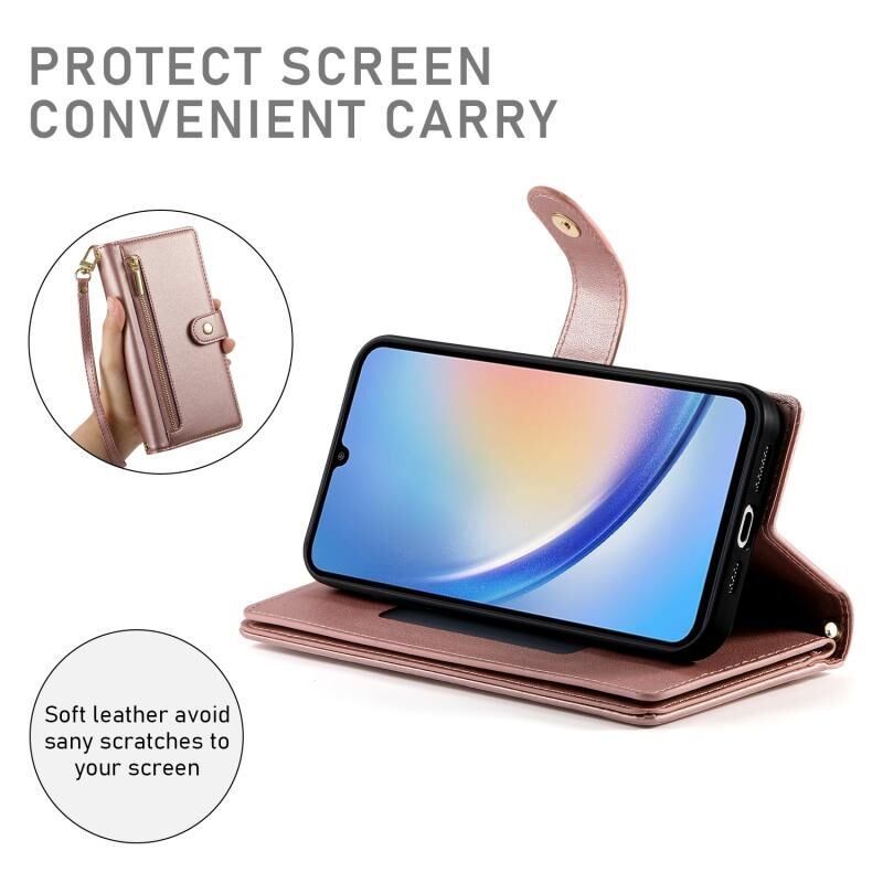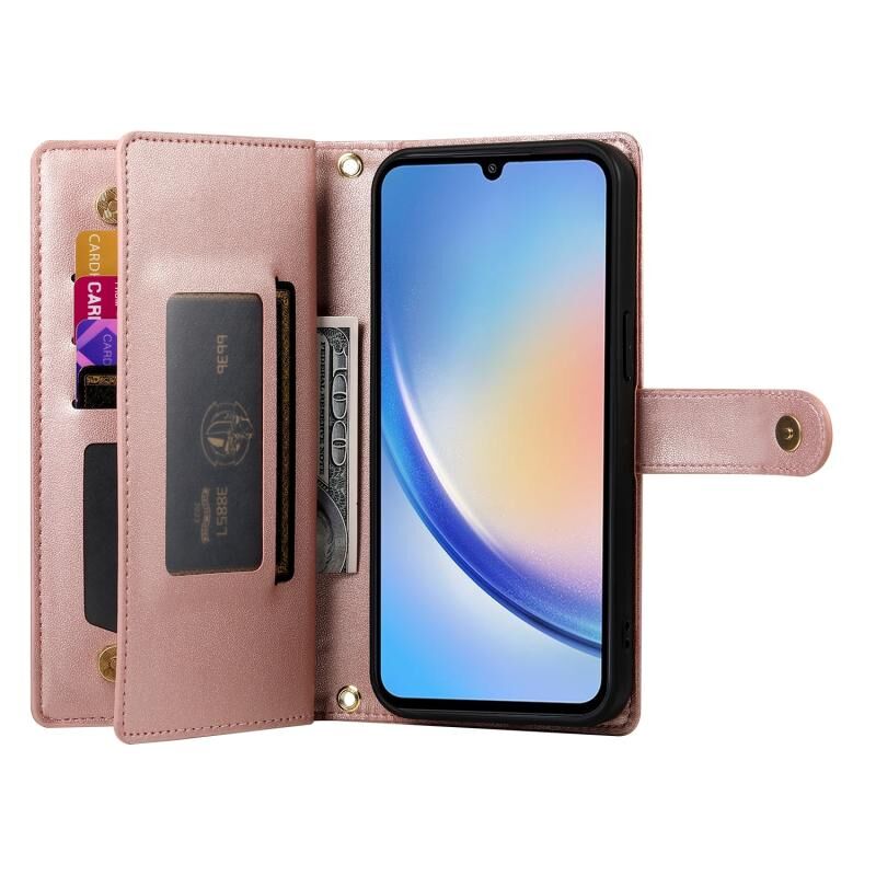 Για Samsung Galaxy A34 5G Nine Card-slot φερμουάρ πορτοφόλι τσάντα δερμάτινη θήκη τηλεφώνου (ροζ)
