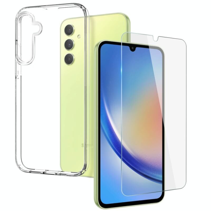 Θήκη κινητού τηλεφώνου NORTHJO Διαφανές TPU για Samsung Galaxy A34 5G με προστατευτική μεμβράνη τζάμι (Διαφανές) (Διαφανές)