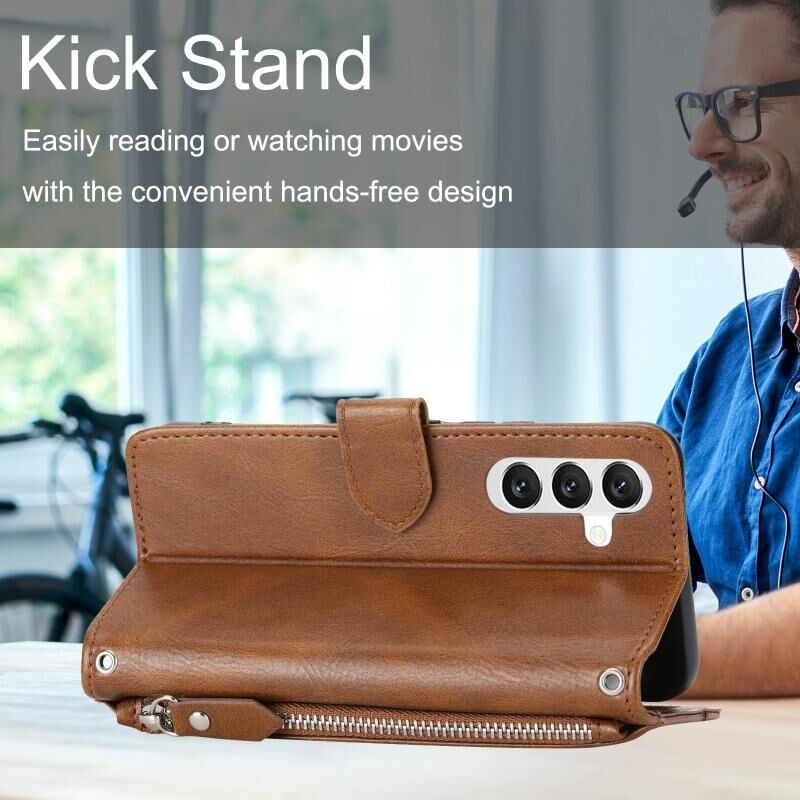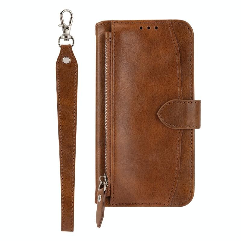 Για Samsung Galaxy A34 5G Oil Skin φερμουάρ πορτοφόλι δερμάτινη θήκη τηλεφώνου (καφέ)