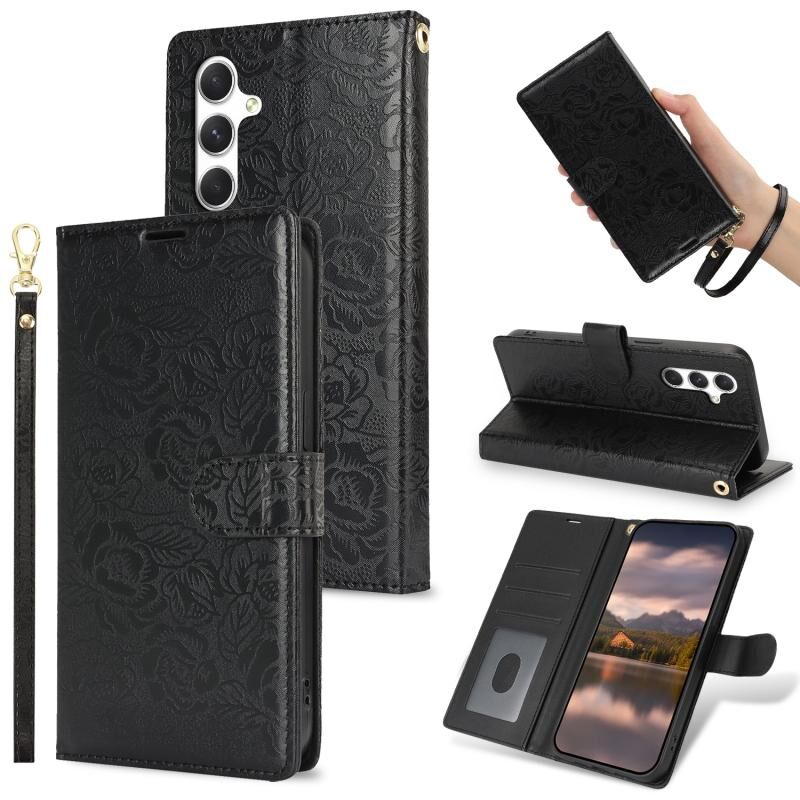 Θήκη τηλεφώνου Samsung Galaxy A34 5G από δέρμα με εκτύπωση παιωνιών (Πράσινο)