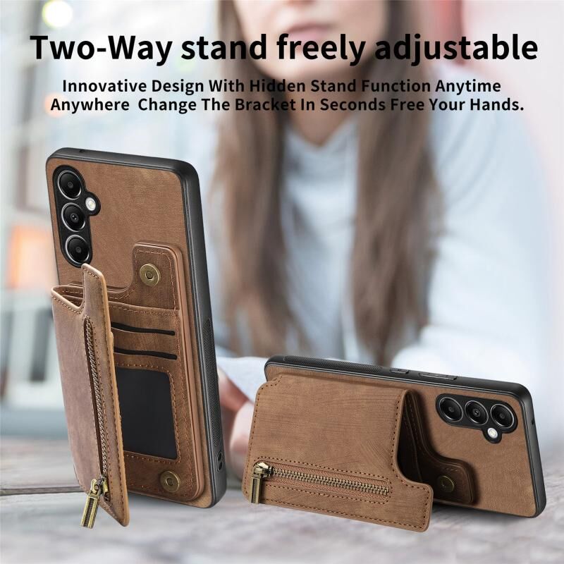 Για Samsung Galaxy A34 5G Ρετρό δέρμα φερμουάρ πορτοφόλι πίσω θήκη τηλεφώνου (καφέ)