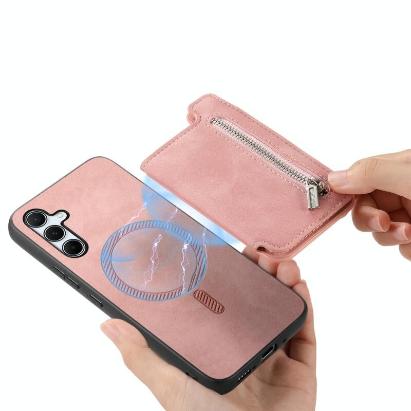 Θήκη κινητού τηλεφώνου για Samsung Galaxy A34 5G, Retro MagSafe, με φερμουάρ και θήκη για κάρτες (Κίτρινο)