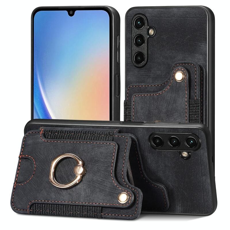 Για Samsung Galaxy A34 5G Retro δέρμα-feel δαχτυλίδι δαχτυλίδι πολλαπλών καρτών πορτοφόλι υπόθεση τηλεφώνου (Μαύρο)