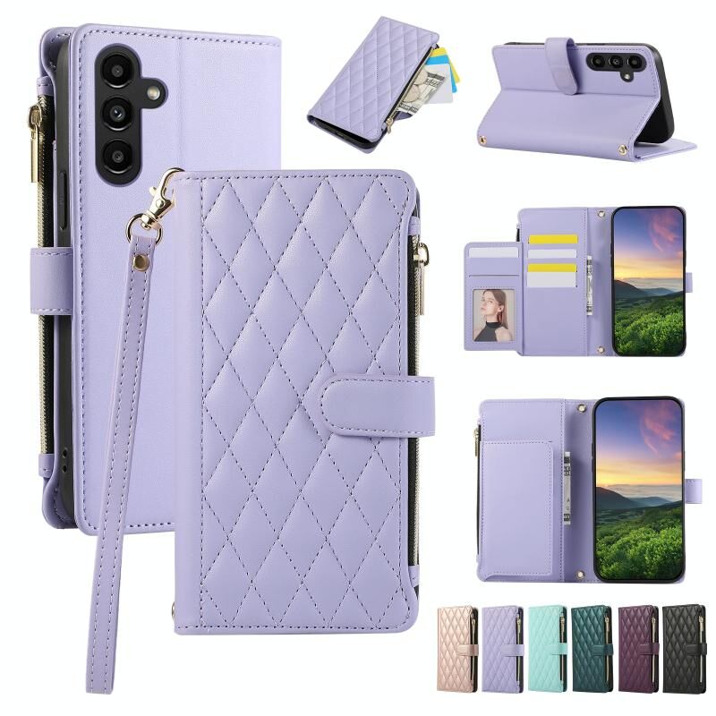 Θήκη τηλεφώνου Samsung Galaxy A34 5G, Δερμάτινη με φερμουάρ και ρόμβους (Μωβ)