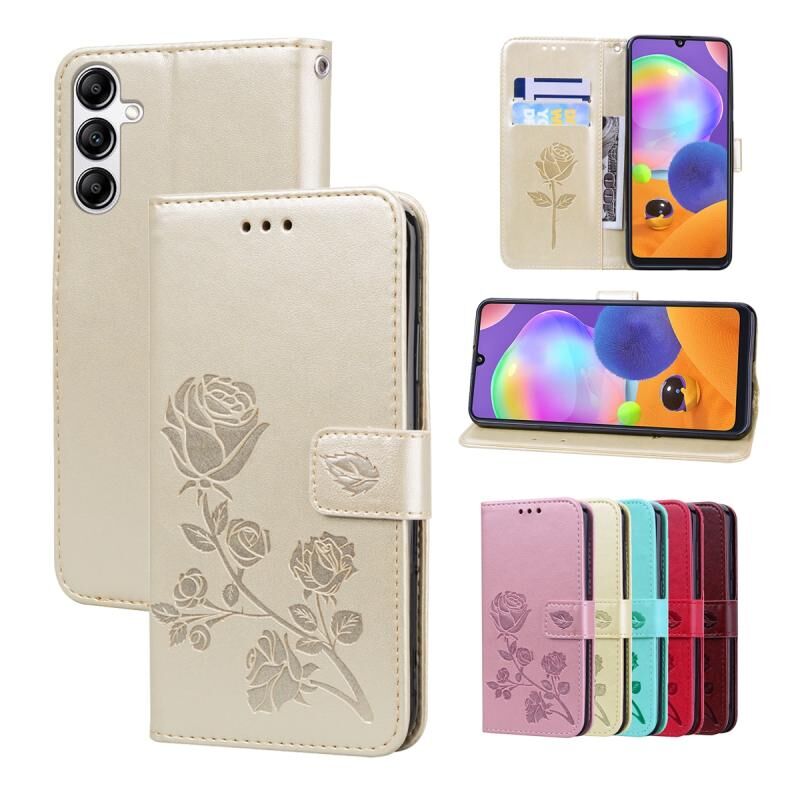 Θήκη τηλεφώνου Samsung Galaxy A34 5G Rose Embossed Flip από δερματίνη PU (Χρυσός)