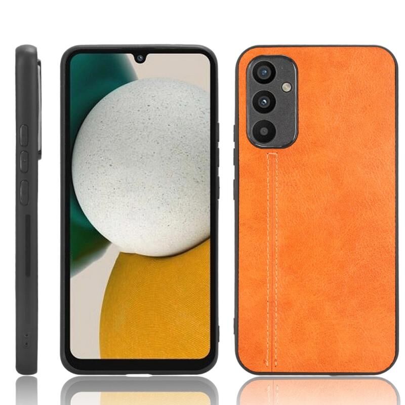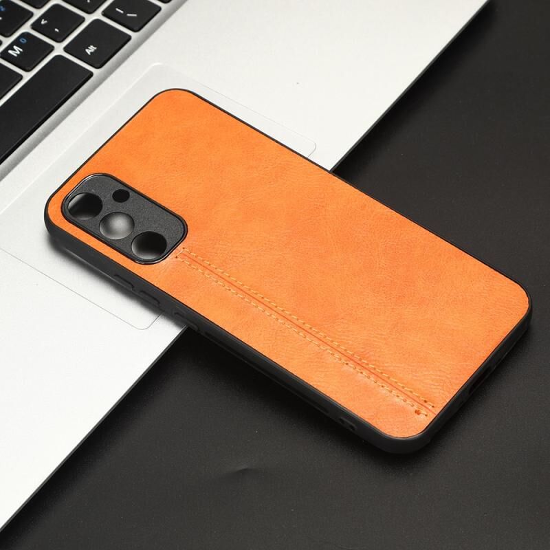 Για Samsung Galaxy A34 5G Ράψιμο αγελάδα μοτίβο δέρματος PC + PU + TPU τηλέφωνο υπόθεση (πορτοκαλί)