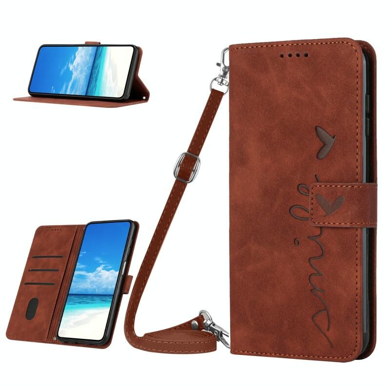 Θήκη τηλεφώνου Samsung Galaxy A34 5G με δερμάτινη υφή, ανάγλυφο σχέδιο καρδιάς και κορδόνι (Καφέ)