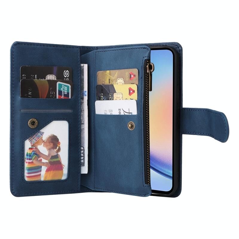 Για Samsung Galaxy A34 5G δέρμα αίσθηση πολλαπλών καρτών πορτοφόλι φερμουάρ δερμάτινη θήκη τηλεφώνου (μπλε)