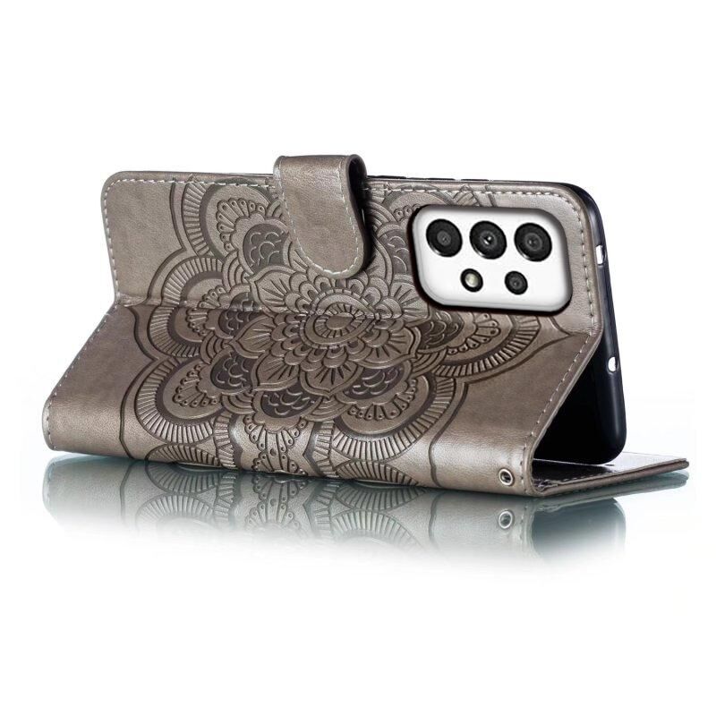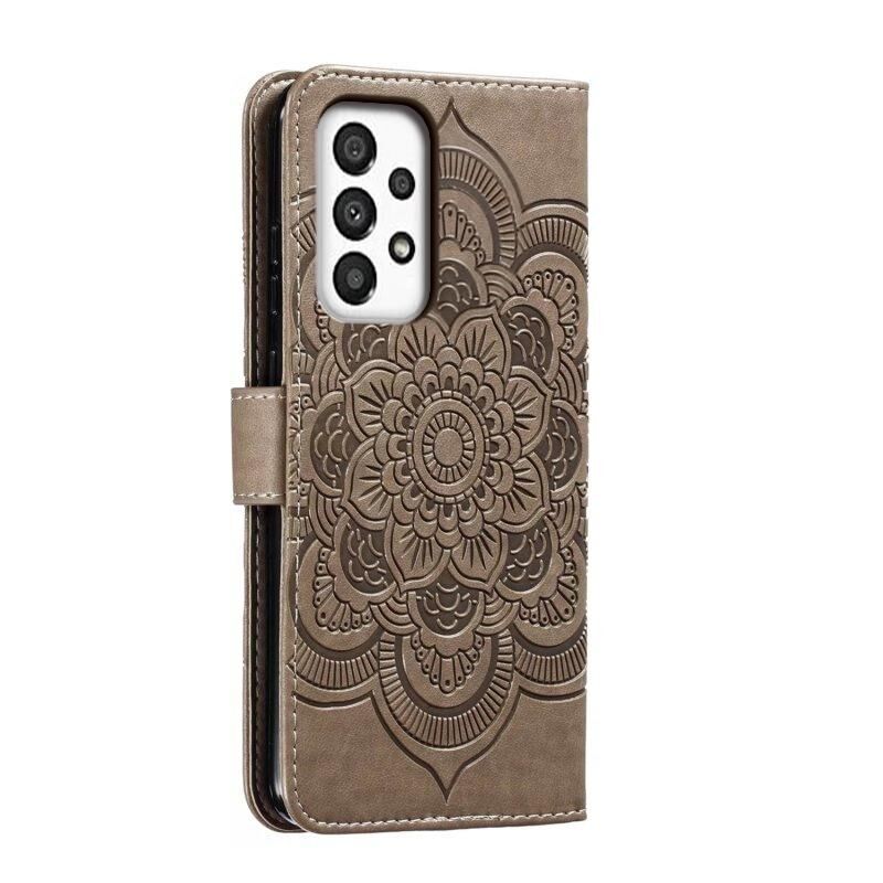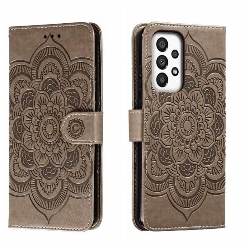 Για Samsung Galaxy A34 5G Sun Mandala ανάγλυφο μοτίβο τηλέφωνο δερμάτινη θήκη (Γκρι)