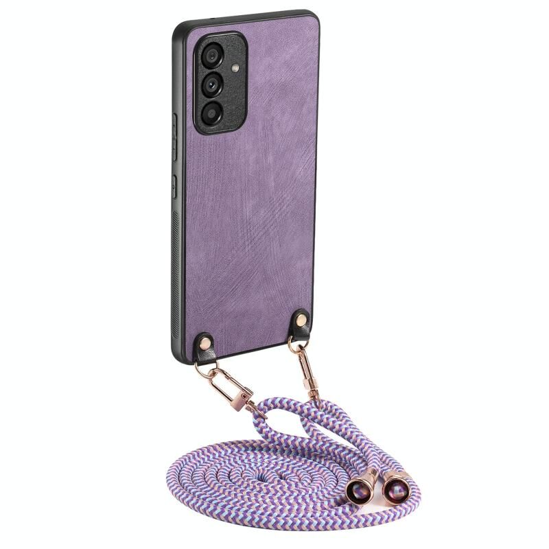 Για Samsung Galaxy A34 5G εκλεκτής ποιότητας δέρμα PC πίσω κάλυψη υπόθεση τηλεφώνου με λουράκι σταυρού (μωβ)