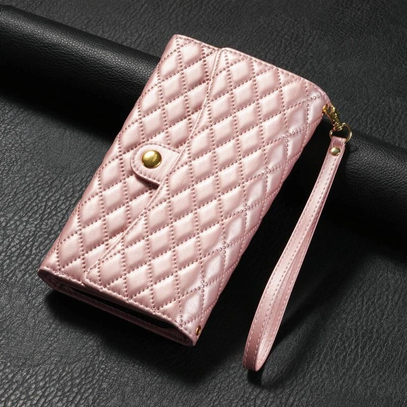 Για Samsung Galaxy A34 5G φερμουάρ πολλαπλών καρτών πορτοφόλι ρομβοειδή δερμάτινη θήκη τηλεφώνου (Ροζ χρυσός)