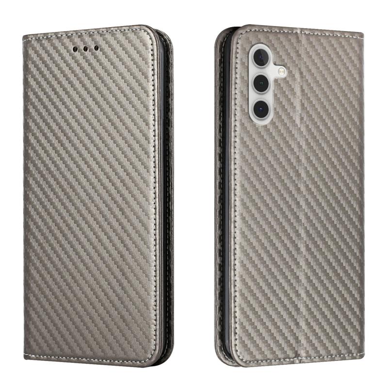 Θήκη τηλεφώνου Samsung Galaxy A34 από δέρμα με υφή ανθρακονημάτων και πτυσσόμενη βάση (Γκρι)