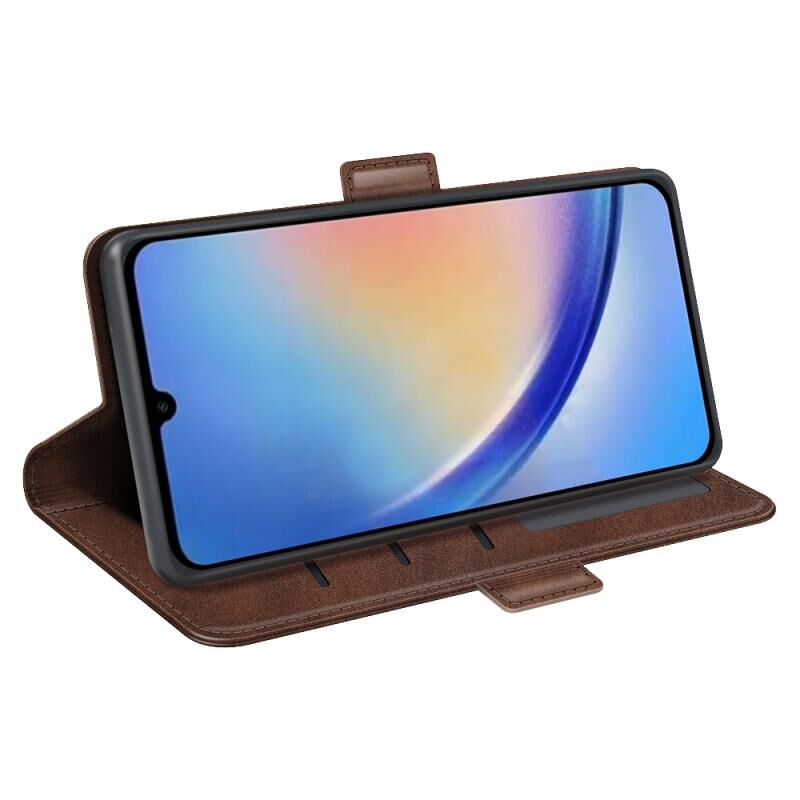 Για Samsung Galaxy A34 διπλής όψης μαγνητική πόρπη οριζόντια Flip δερμάτινη θήκη τηλεφώνου (Καφέ)