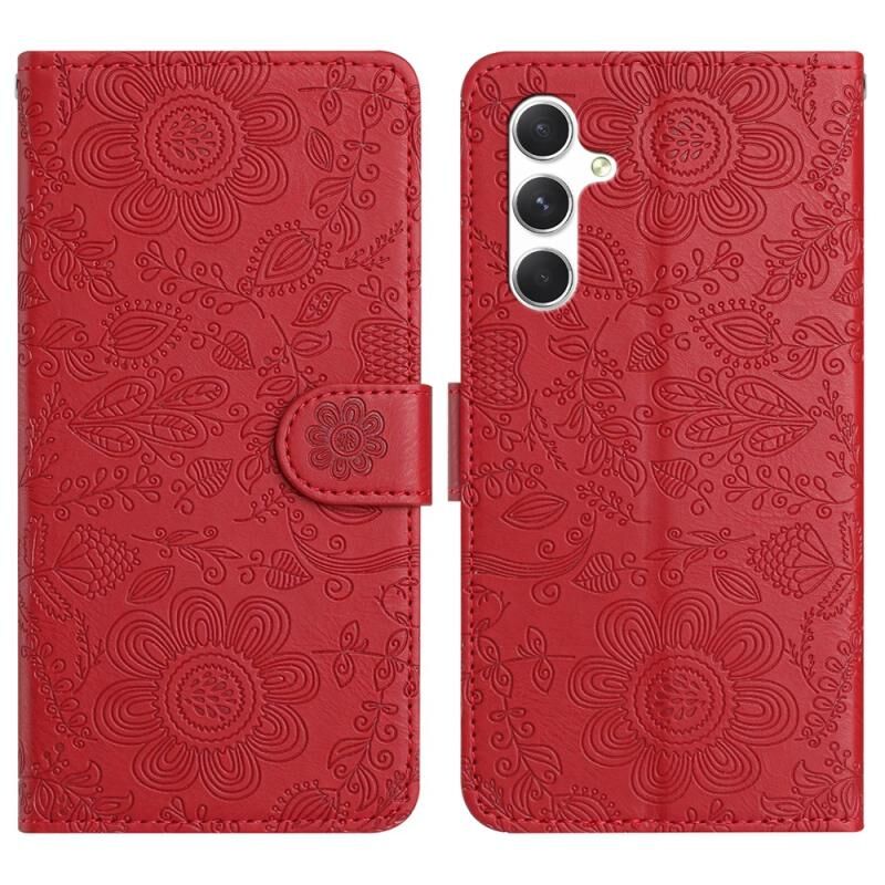 Για Samsung Galaxy A34 Floral ανάγλυφο μοτίβο δερμάτινη θήκη τηλεφώνου (κόκκινο)