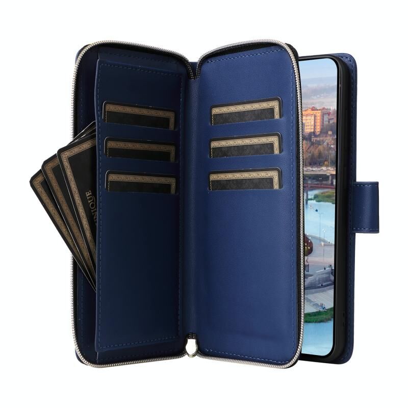 5. Πρακτική λειτουργία θήκης καρτών: Η υποδοχή κάρτας και η τσέπη πορτοφολιού με φερμουάρ και η θήκη μετρητών μπορούν να αποθηκεύσουν τις πιστωτικές σας κάρτες, τα μετρητά ή τα μικρά χαρτονομίσματα που χρειάζεστε καθημερινά.