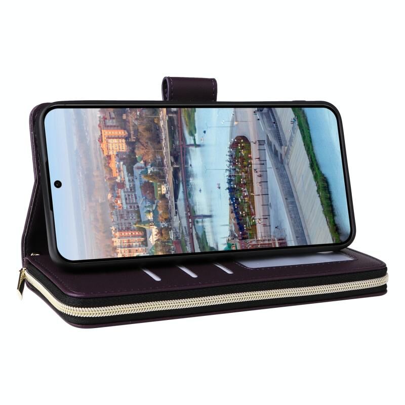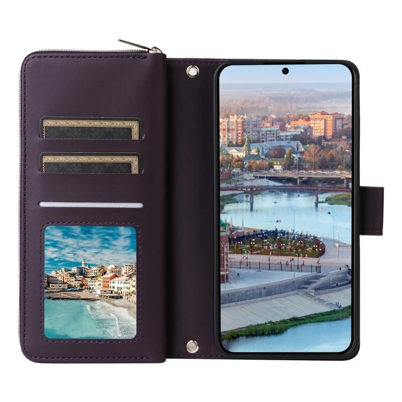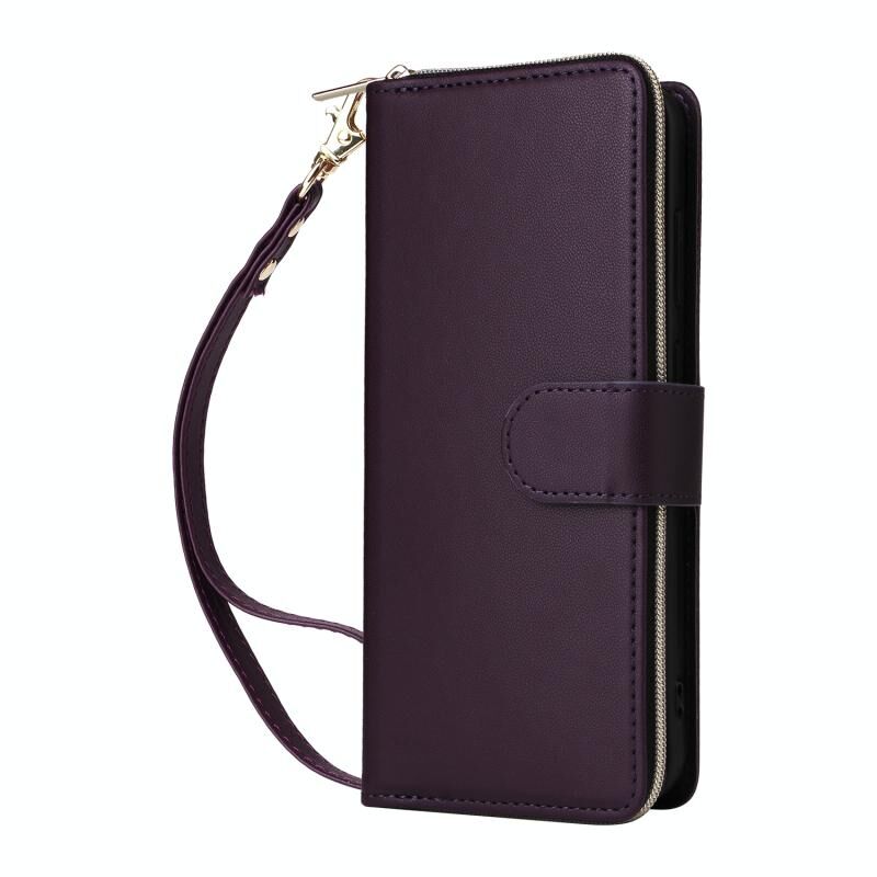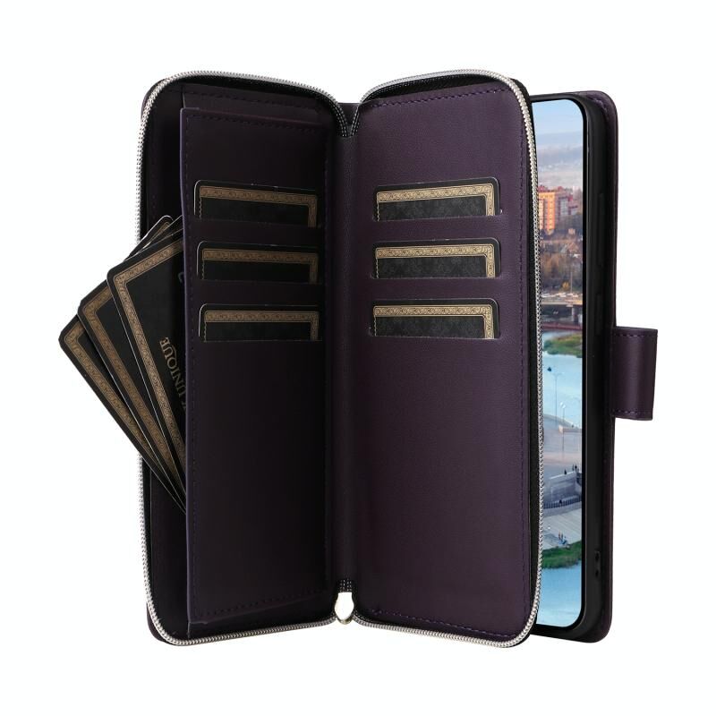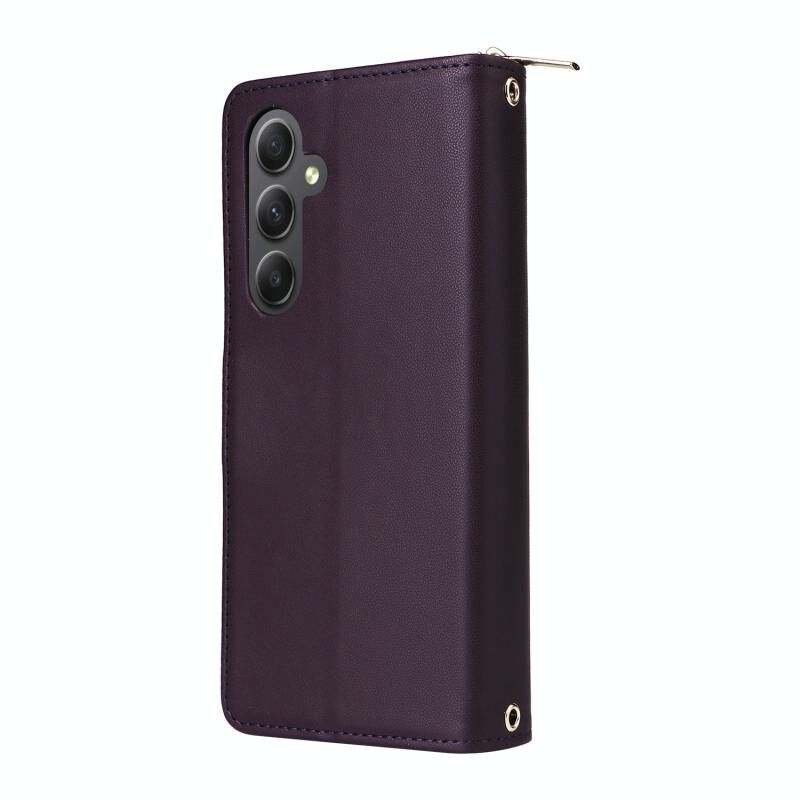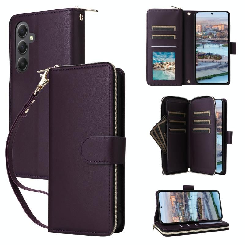 Για Samsung Galaxy A34 Εννέα-κάρτα Slots φερμουάρ πορτοφόλι τσάντα δερμάτινη θήκη τηλεφώνου (σκούρο μωβ)