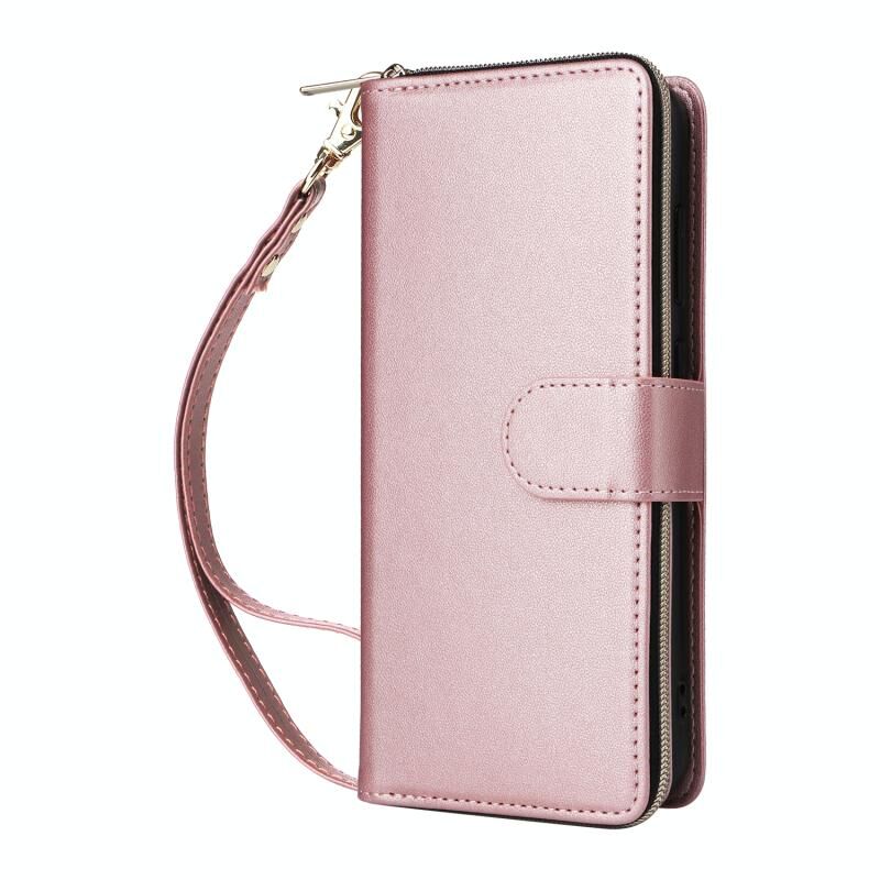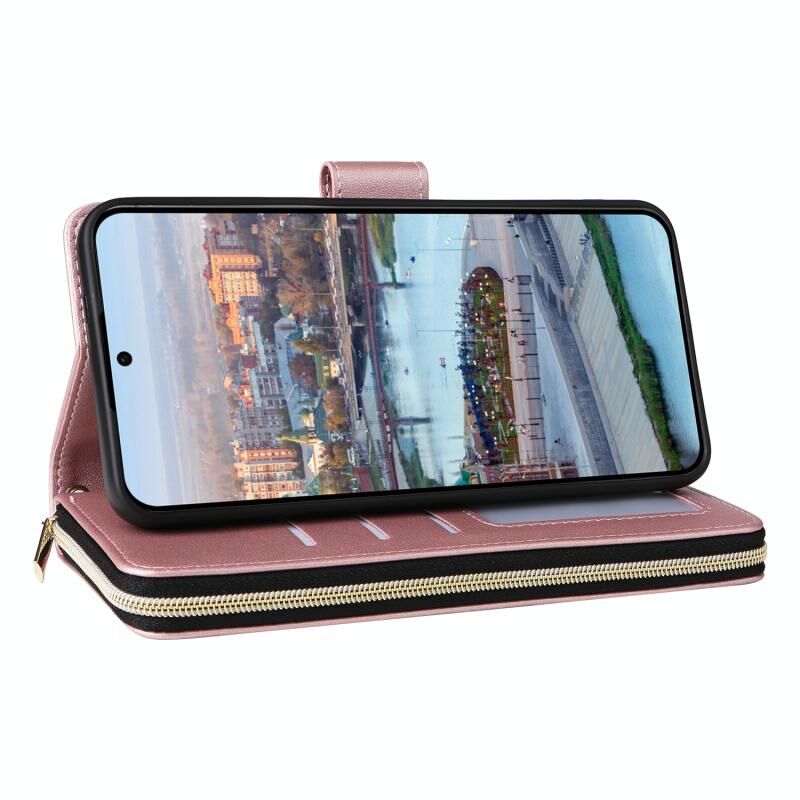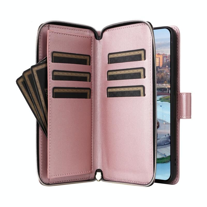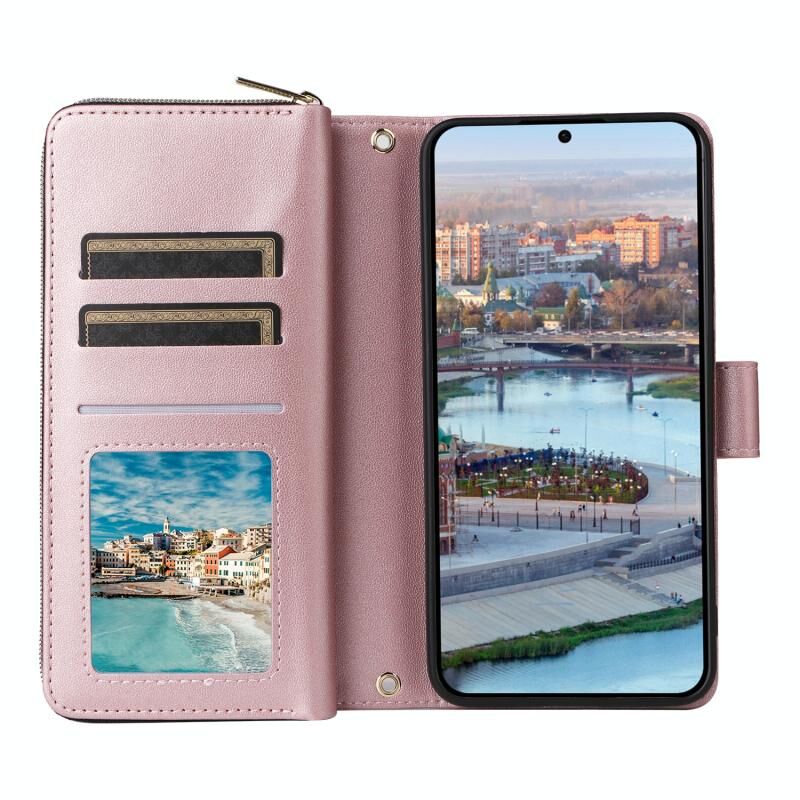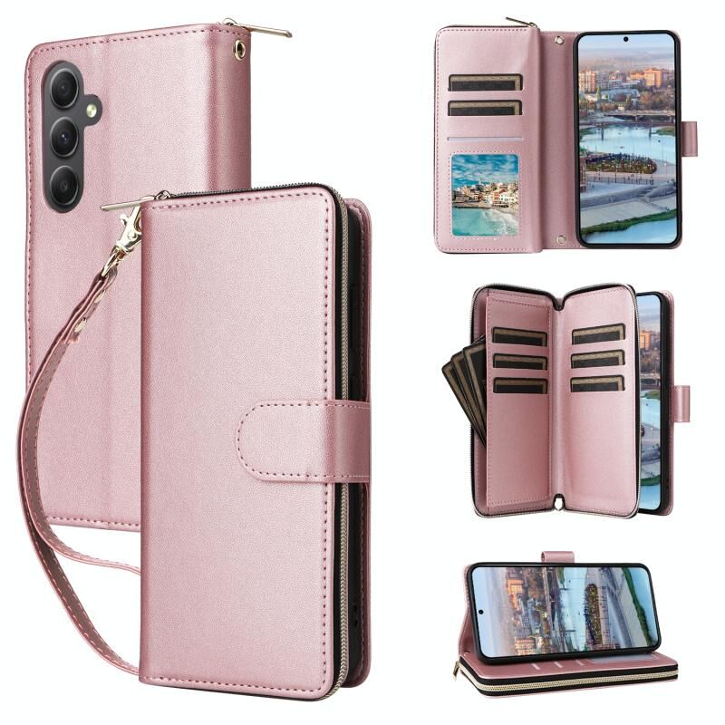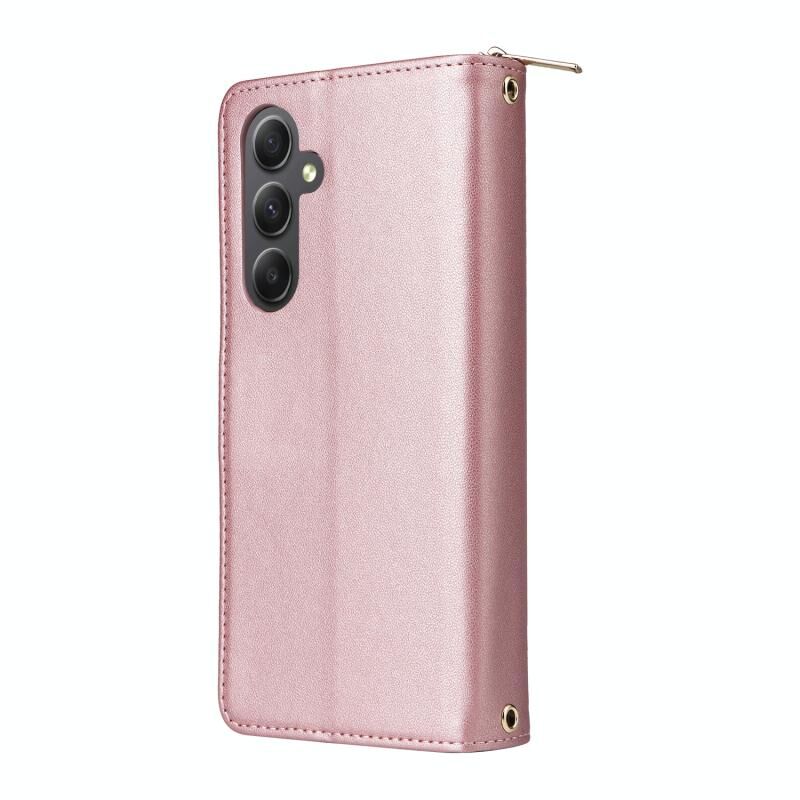 Για Samsung Galaxy A34 Εννέα-κάρτα Slots φερμουάρ πορτοφόλι τσάντα δερμάτινη θήκη τηλεφώνου (Rose Gold)