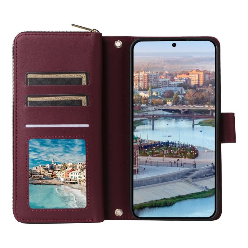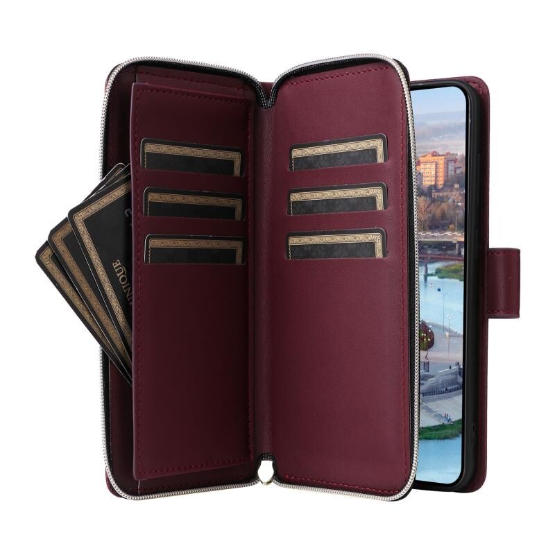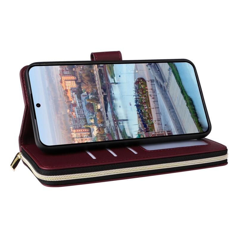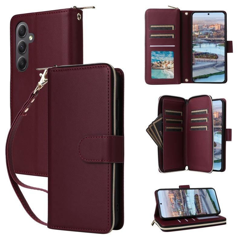 Για Samsung Galaxy A34 εννέα-κάρτα Slots φερμουάρ τσάντα πορτοφόλι δερμάτινη θήκη τηλεφώνου (κόκκινο κρασί)