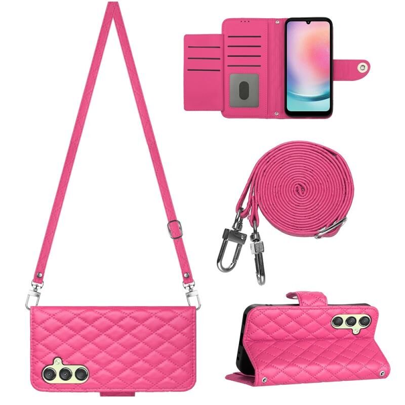 Για Samsung Galaxy A34 Rhombic υφή Flip δερμάτινη θήκη τηλεφώνου με μακρύ κορδόνι (Ροζέ κόκκινο)