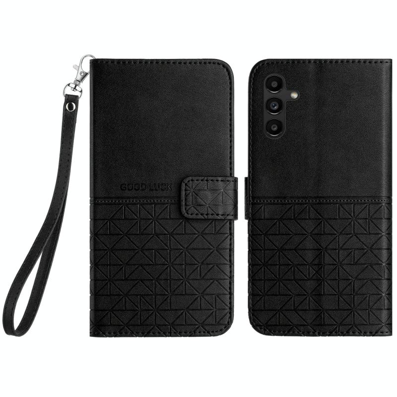 For Samsung Galaxy A34 Rhombic Texture Leather Phone Case with Lanyard(Black)