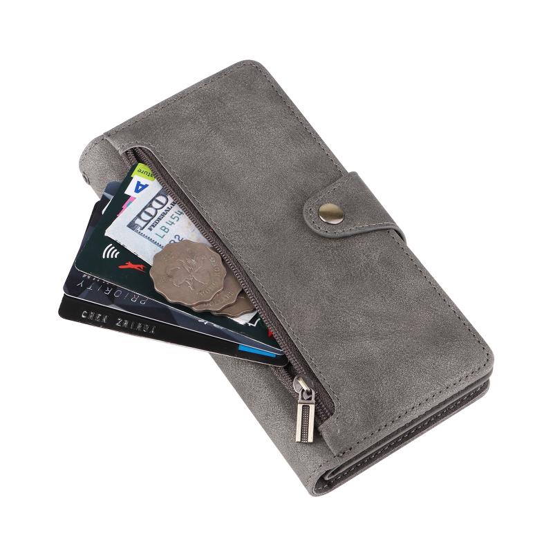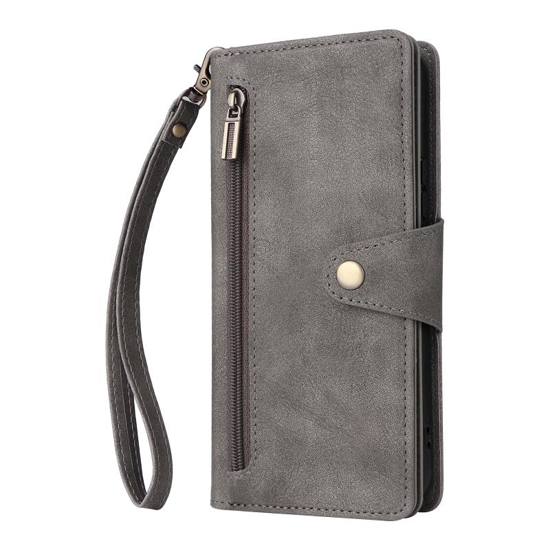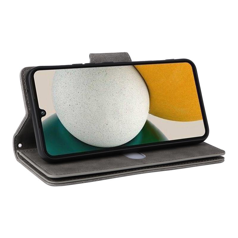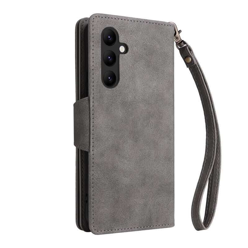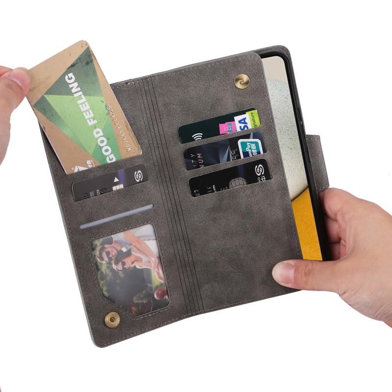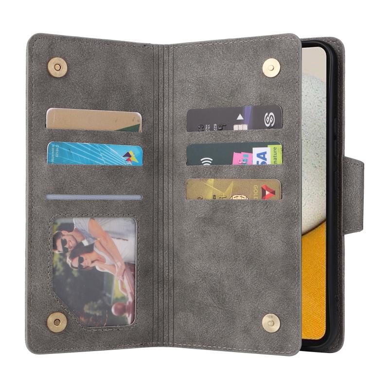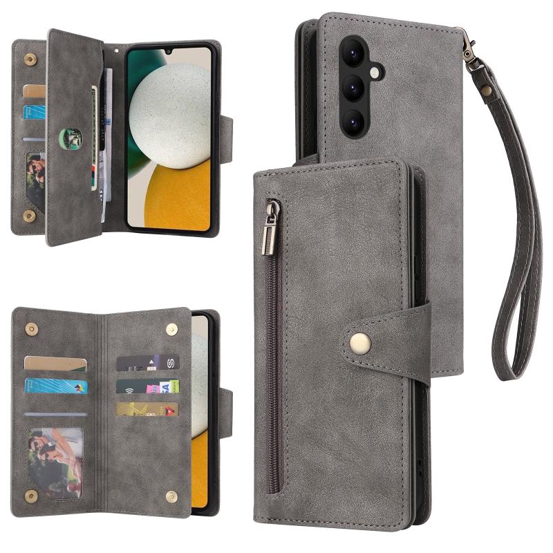 Θήκη τηλεφώνου Samsung Galaxy A34 με δερμάτινη τριπλή πτυχή, 9 θέσεις για κάρτες και αγκράφα Rivet (Γκρι)