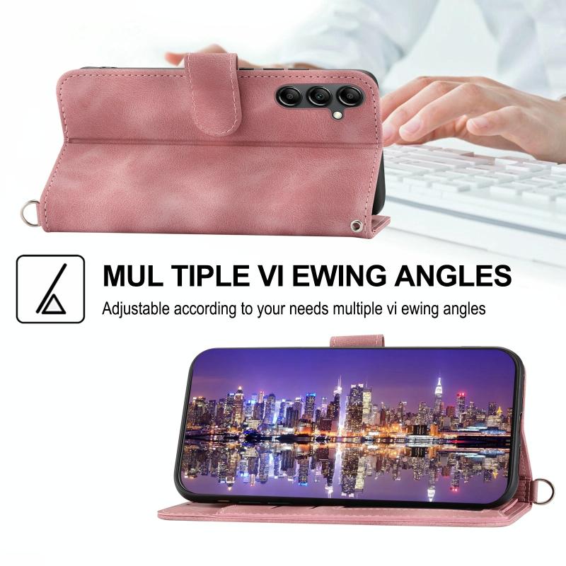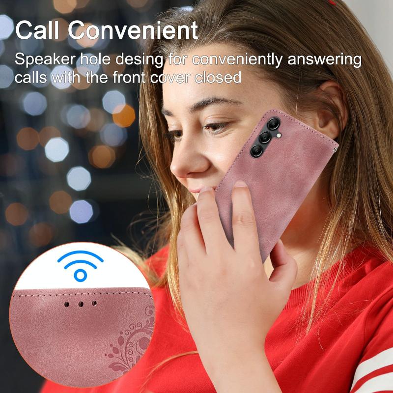 Θήκη τηλεφώνου Samsung Galaxy A34 με υφή δέρματος, ανάγλυφα λουλούδια και πορτοφόλι (ρόζ)
