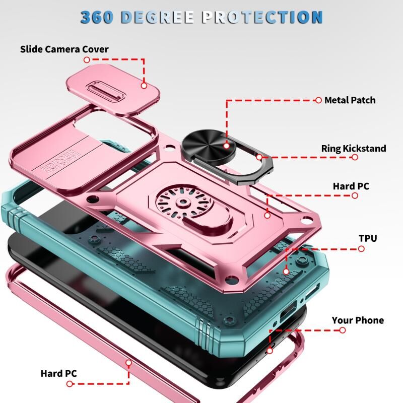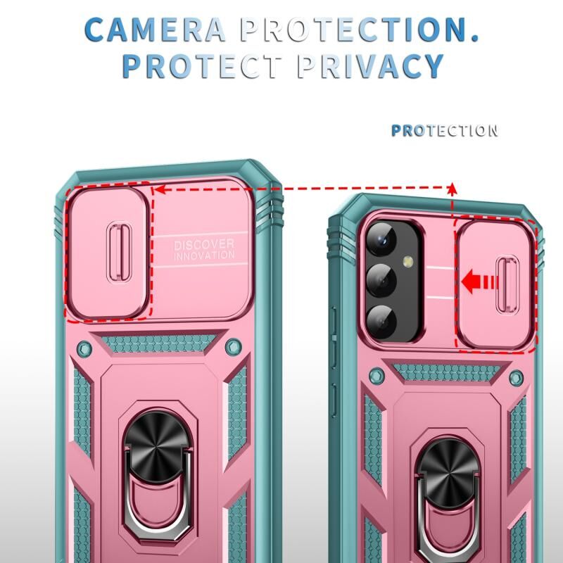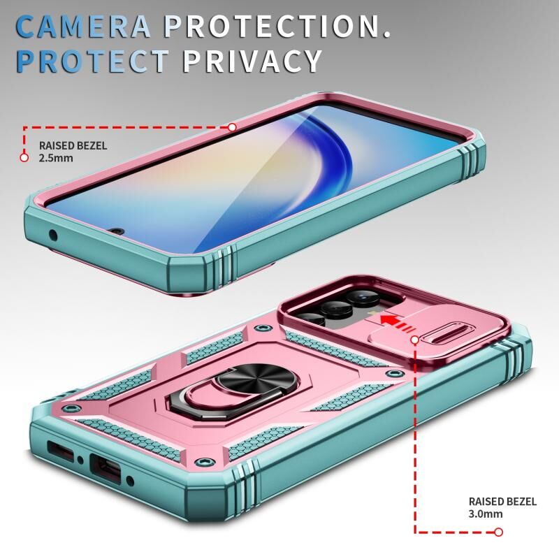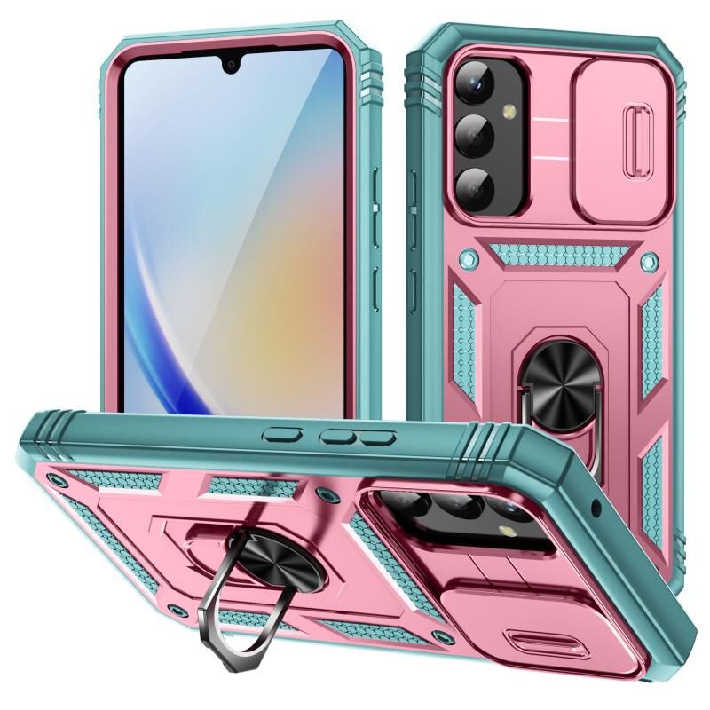 Για Samsung Galaxy A34 Συρόμενη θήκη τηλεφώνου Camshield TPU + PC με θήκη (Ροζ+Πράσινο)