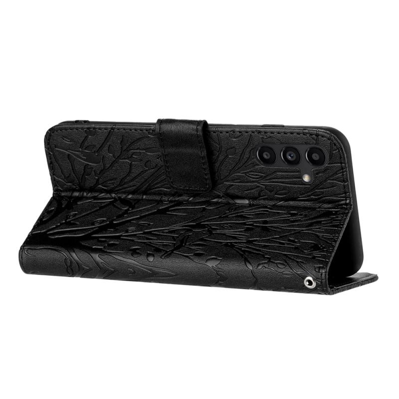 For Samsung Galaxy A34 Tree Birds Embossed Pattern Leather Phone Case(Black)