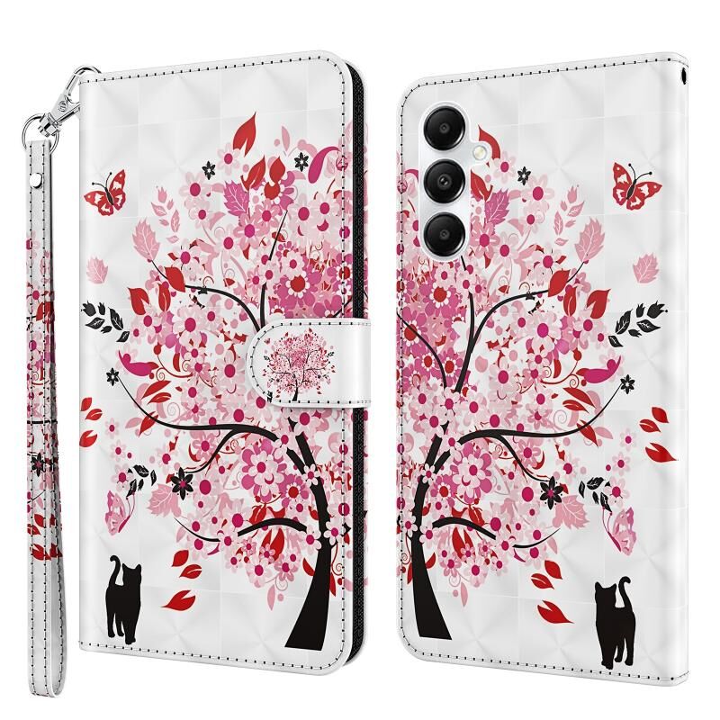Θήκη τηλεφώνου Samsung Galaxy A35 5G με δερμάτινη επιφάνεια και σχέδιο 3D (Γάτα κάτω από το δέντρο)
