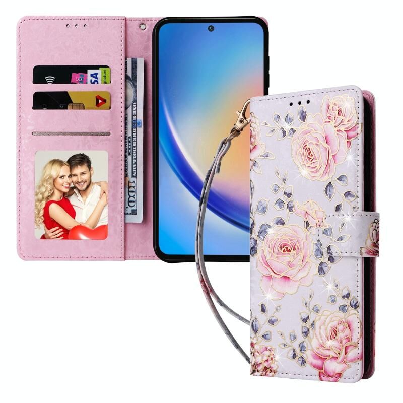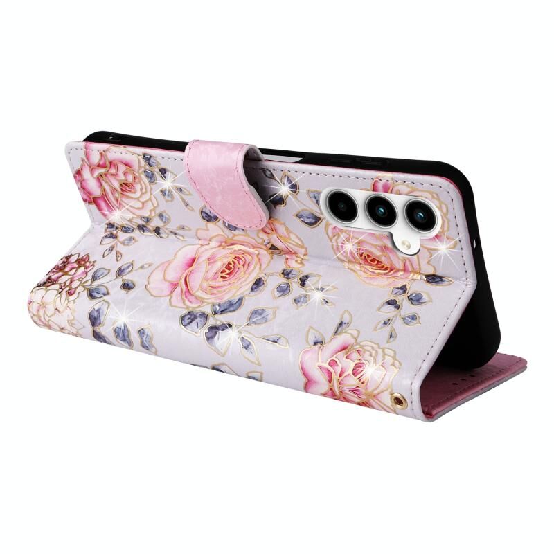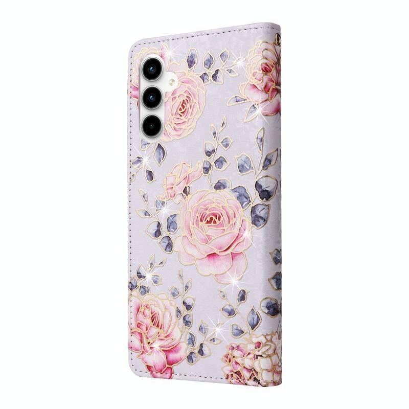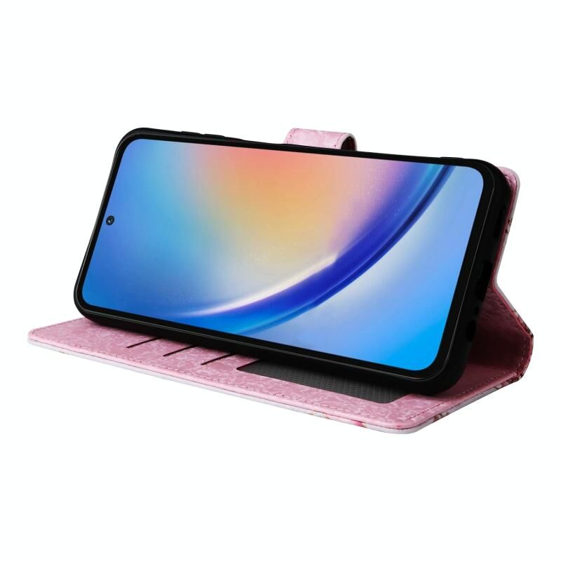 Θήκη τηλεφώνου Samsung Galaxy A35 5G από δέρμα με τεχνολογία RFID και ζωγραφική μπρονζέ (Ροζ Παραστάσεων)