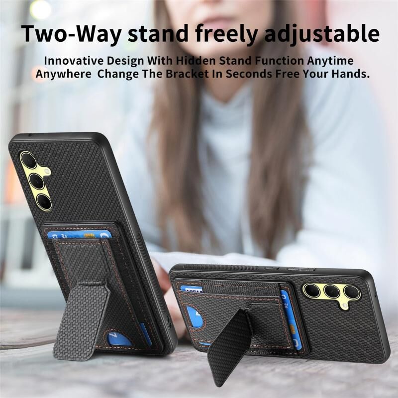 Για Samsung Galaxy A35 5G ίνες άνθρακα 5G Πτυσσόμενα Stand ελαστική κάρτα τσάντα υπόθεση τηλεφώνου (μαύρο)