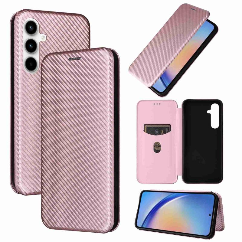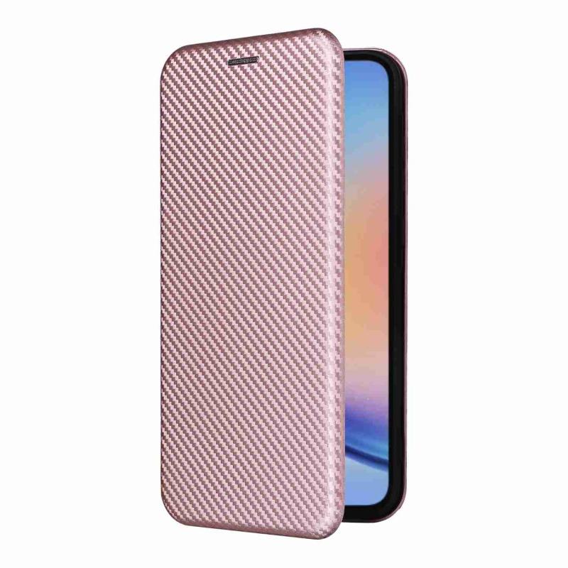 Θήκη τηλεφώνου Samsung Galaxy A35 5G από δέρμα με υφή ανθρακονημάτων (Καφέ)