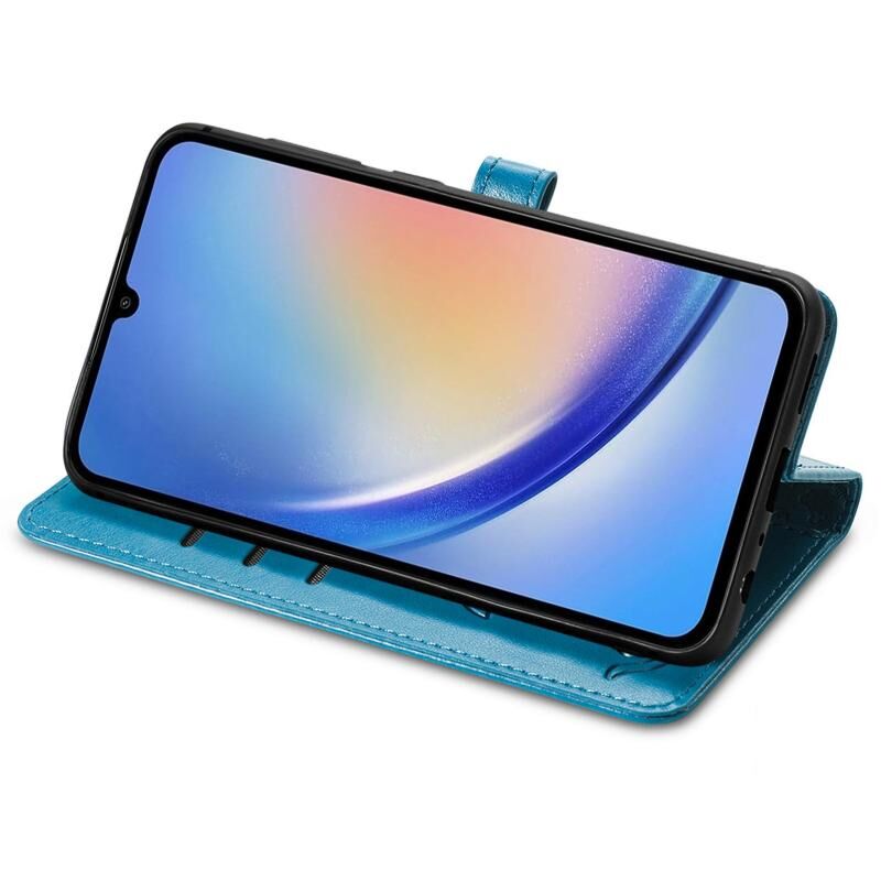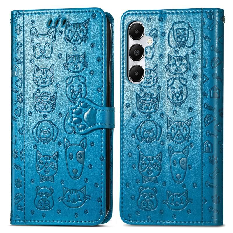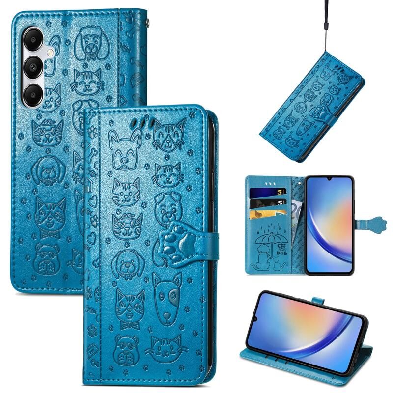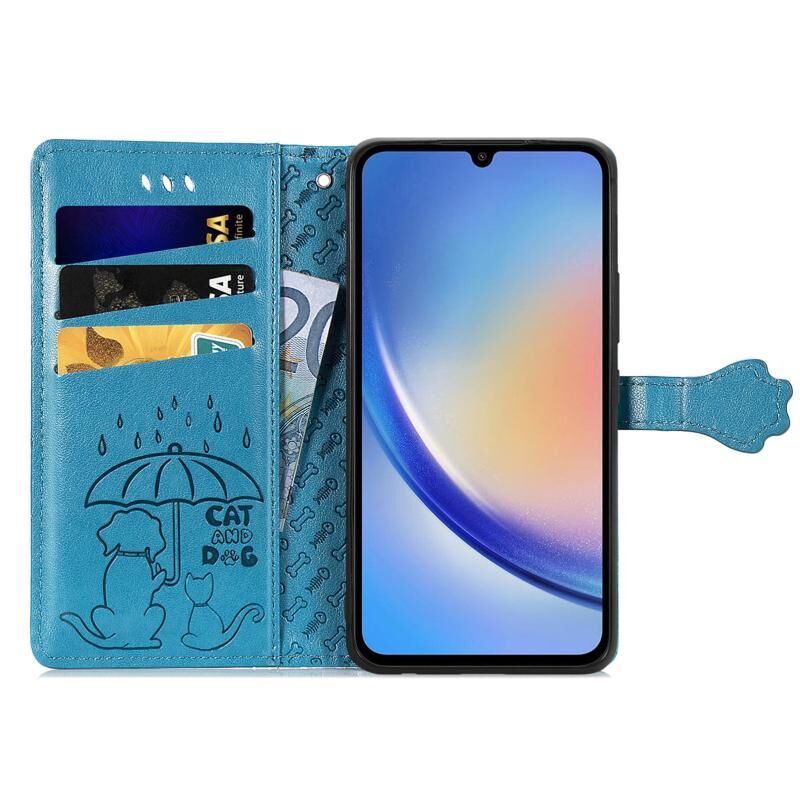 Θήκη τηλεφώνου Samsung Galaxy A35 5G με ανάγλυφο σχέδιο γάτας και σκύλου από δέρμα (Μπλε)