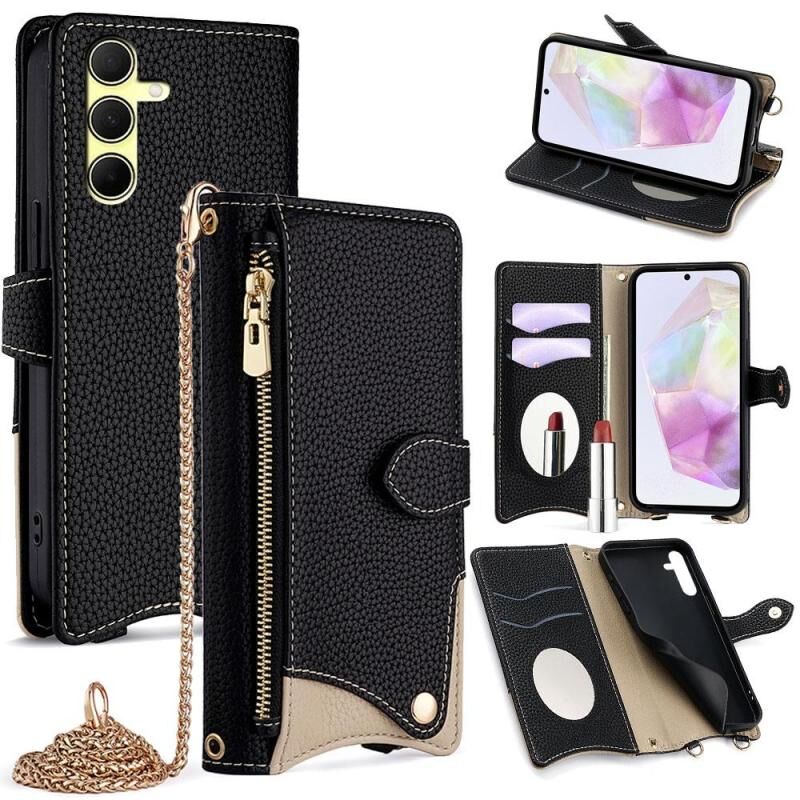 Για Samsung Galaxy A35 5G Crossbody Αλυσίδα Fishtail Litchi Δερμάτινη θήκη τηλεφώνου (Μαύρο)