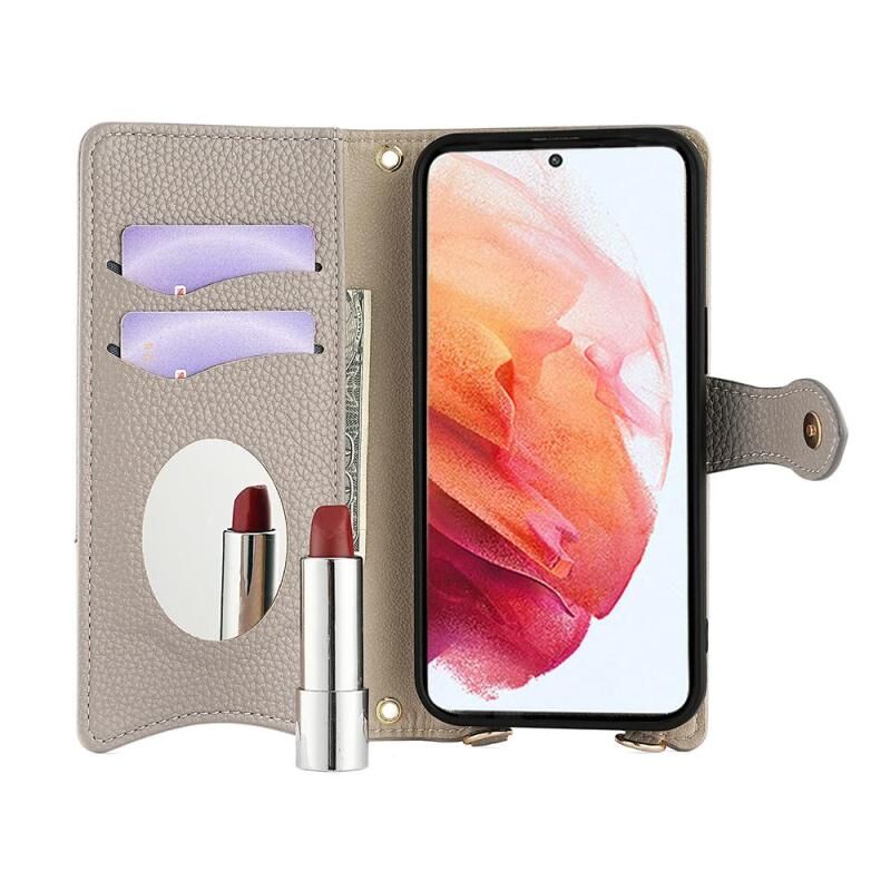 7. Ενσωματωμένος οβάλ καθρέφτης μακιγιάζ από ανοξείδωτο χάλυβα: Ένας ανθεκτικός, ανθεκτικός στις γρατσουνιές οβάλ καθρέφτης στο εσωτερικό της θήκης του τηλεφώνου για εύκολο φρεσκάρισμα του μακιγιάζ εν κινήσει.