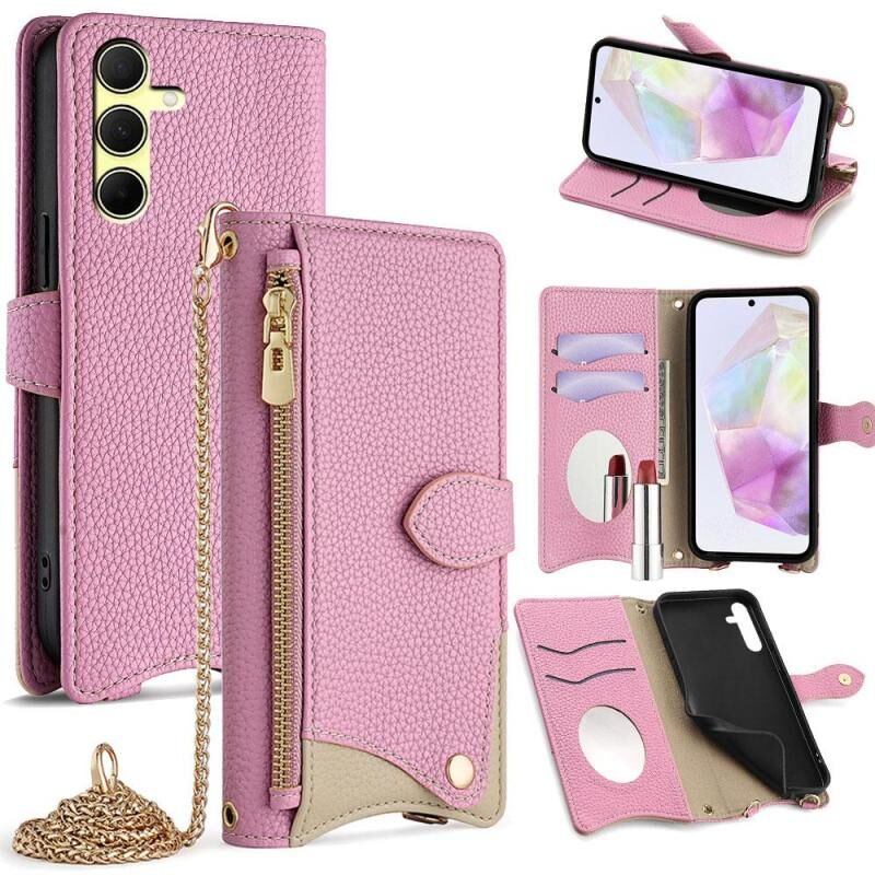 Για Samsung Galaxy A35 5G Σταυρός σώμα αλυσίδα Fishtail Litchi δέρμα τηλέφωνο υπόθεση (ροζ)