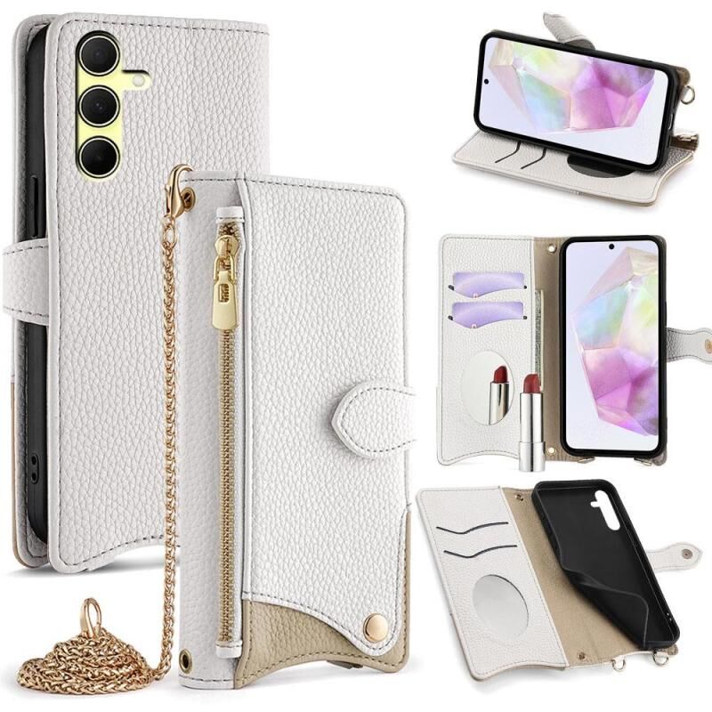 Για Samsung Galaxy A35 5G Σταυρός σώμα αλυσίδα Fishtail Litchi δέρμα υπόθεση τηλεφώνου (λευκό)